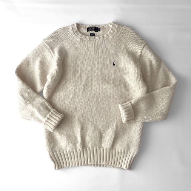 Detail ▪️Brand or Item: Polo by Ralph Lauren" ▪️ Size(表記): L ▪️ Color: オフホワイト 生成り ▪️ Material: ウール ▪️ Condition: やや毛羽立ちあり ー ▪️ Size(実寸) ※㎝ ・身幅:56 ・着丈:70 ・肩幅:54 ・袖丈:66 実寸から: L 程度 ー ▪️ Note: ナイガイ代理店時の肉厚ウールニットセーター シンプル無地にワンポイントで定番のネイビーポニー刺繍 ローゲージ編みの暖かいアイテムです。。 ー n6-973 ※観覧環境によって色味が変わります ※お取り置きはご対応していません ※DMはお答えしきれない場合もあります ※ WEB購入は各割引適用外です [ 送料無料 ] ■ ↓ご注文前に確認お願いします↓■ ※在庫更新は随時行っていますが、実店舗でも販売しているため完売していた際はご注文後でもキャンセルさせていただく場合があります。 ※完売済みでキャンセルの際は個別にご連絡は致しませんのでご了承宜しくお願い致します。 (キャンセル通知はご登録メールに送られます) ※返品交換は明確な当店側の落ち度がない限りお断りしております。サイズを間違えたなどもご対応できません。 ※月曜日は定休日なのでその前後にご注文の際は発送に遅れも出ます (日曜日14:00以降、月曜日ご注文分) ※時間指定は承りますが、日付け指定は順次発送のため対応しておりません。 (システム上、指定はできますが当店はご対応していません) ※発送方法は商品サイズによっても異なるのでご指定はできません。ポスト投函の際は時間指定もご対応できません。 ※商品によっては圧縮して発送の場合もありますのでその際は到着後のシワなどご了承宜しくお願い致します。 ※着画等、画像の追加はご対応できません。 ※当店では領収書発行はご対応していません。 (各お支払い時の明細書や受領書と購入時に届く「ご購入いただきありがとうございました」メールをあわせて、領収書の代わりとしてご利用ください) ※買い付け等で発送が大幅に遅れる場合があります。営業スケジュールやブログなどでご報告していますのでご確認宜しくお願いします。