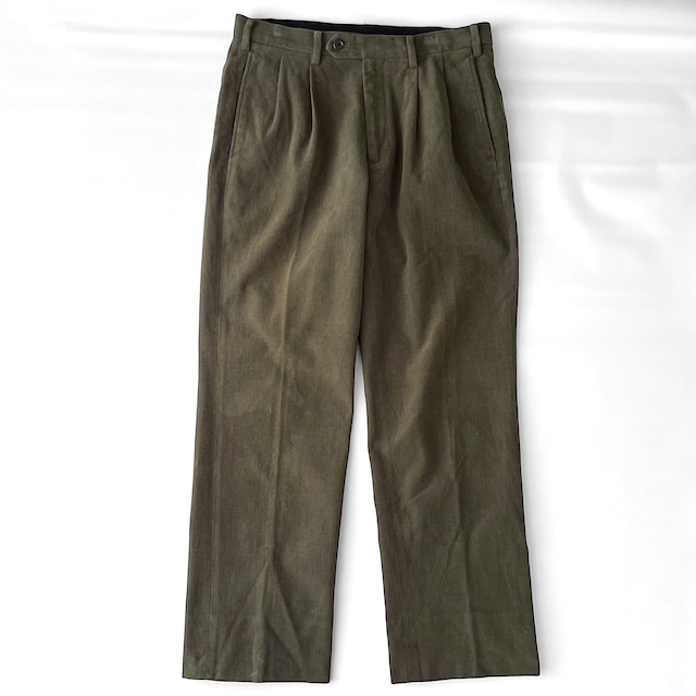 Detail ▪️Brand or Item: unknown" ▪️ Size(表記): ー ▪️ Color: カーキグリーン ▪️ Material: コットン ▪️ Condition: 特になし ー ▪️ Size(実寸) ※㎝ ・ウエスト:82 ・股上:28 ・股下:74 ・もも幅:30 ・裾幅:23 実寸から: L 程度 ー ▪️ Note: ツータックのモールスキントラウザーパンツ イタリア名門生地ブランド、テックスマントヴァのイタリア製生地を使用 カーキグリーンが良い色味の綺麗なストレートシルエットです。。 ー n6-959 ※観覧環境によって色味が変わります ※お取り置きはご対応していません ※DMはお答えしきれない場合もあります ※ WEB購入は各割引適用外です [ 送料無料 ] ■ ↓ご注文前に確認お願いします↓■ ※在庫更新は随時行っていますが、実店舗でも販売しているため完売していた際はご注文後でもキャンセルさせていただく場合があります。 ※完売済みでキャンセルの際は個別にご連絡は致しませんのでご了承宜しくお願い致します。 (キャンセル通知はご登録メールに送られます) ※返品交換は明確な当店側の落ち度がない限りお断りしております。サイズを間違えたなどもご対応できません。 ※月曜日は定休日なのでその前後にご注文の際は発送に遅れも出ます (日曜日14:00以降、月曜日ご注文分) ※時間指定は承りますが、日付け指定は順次発送のため対応しておりません。 (システム上、指定はできますが当店はご対応していません) ※発送方法は商品サイズによっても異なるのでご指定はできません。ポスト投函の際は時間指定もご対応できません。 ※商品によっては圧縮して発送の場合もありますのでその際は到着後のシワなどご了承宜しくお願い致します。 ※着画等、画像の追加はご対応できません。 ※当店では領収書発行はご対応していません。 (各お支払い時の明細書や受領書と購入時に届く「ご購入いただきありがとうございました」メールをあわせて、領収書の代わりとしてご利用ください) ※買い付け等で発送が大幅に遅れる場合があります。営業スケジュールやブログなどでご報告していますのでご確認宜しくお願いします。
