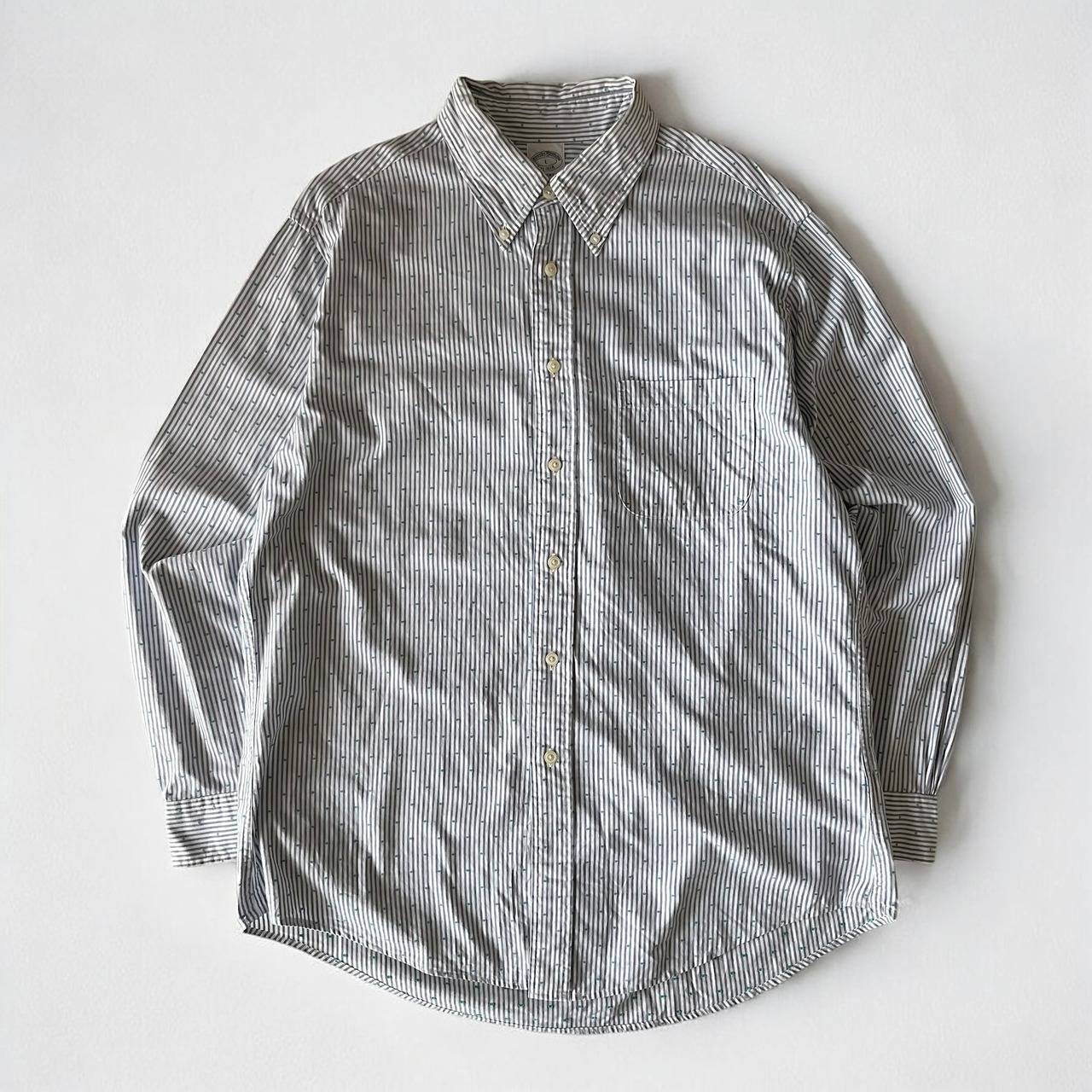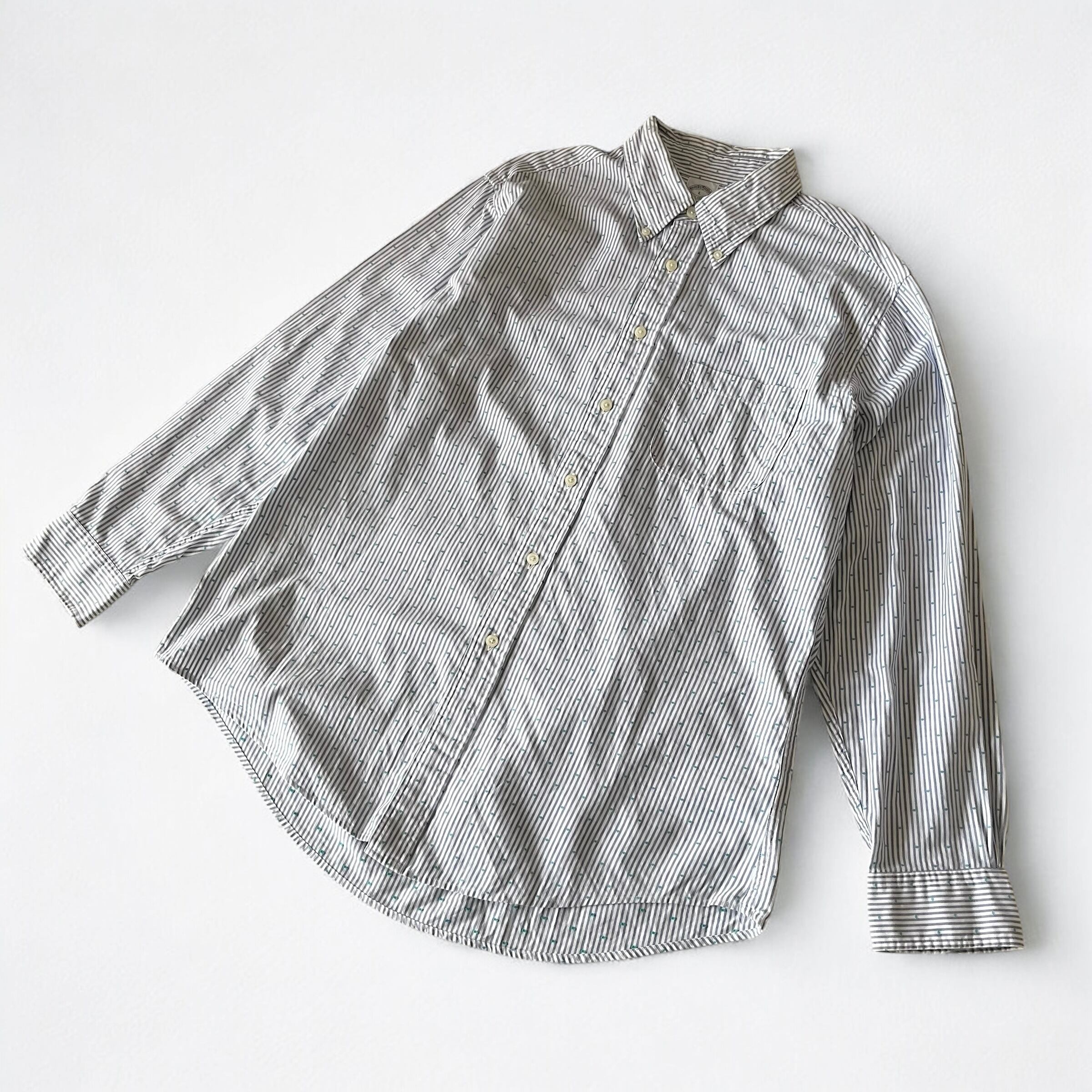 ストライプに刺繍ドット柄のオックスフォードシャツ