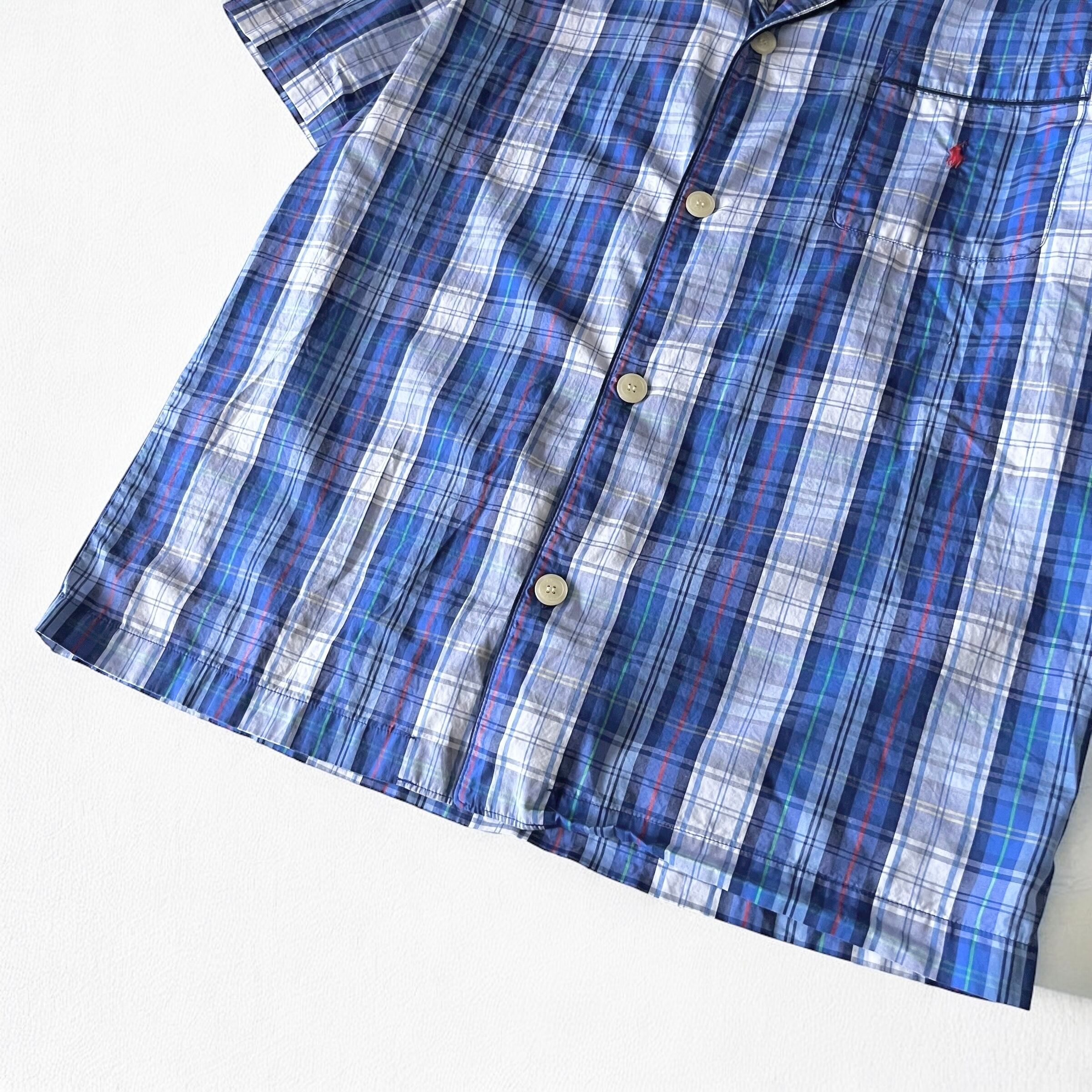 ゆるい雰囲気のオープンカラーパジャマチェックシャツ
