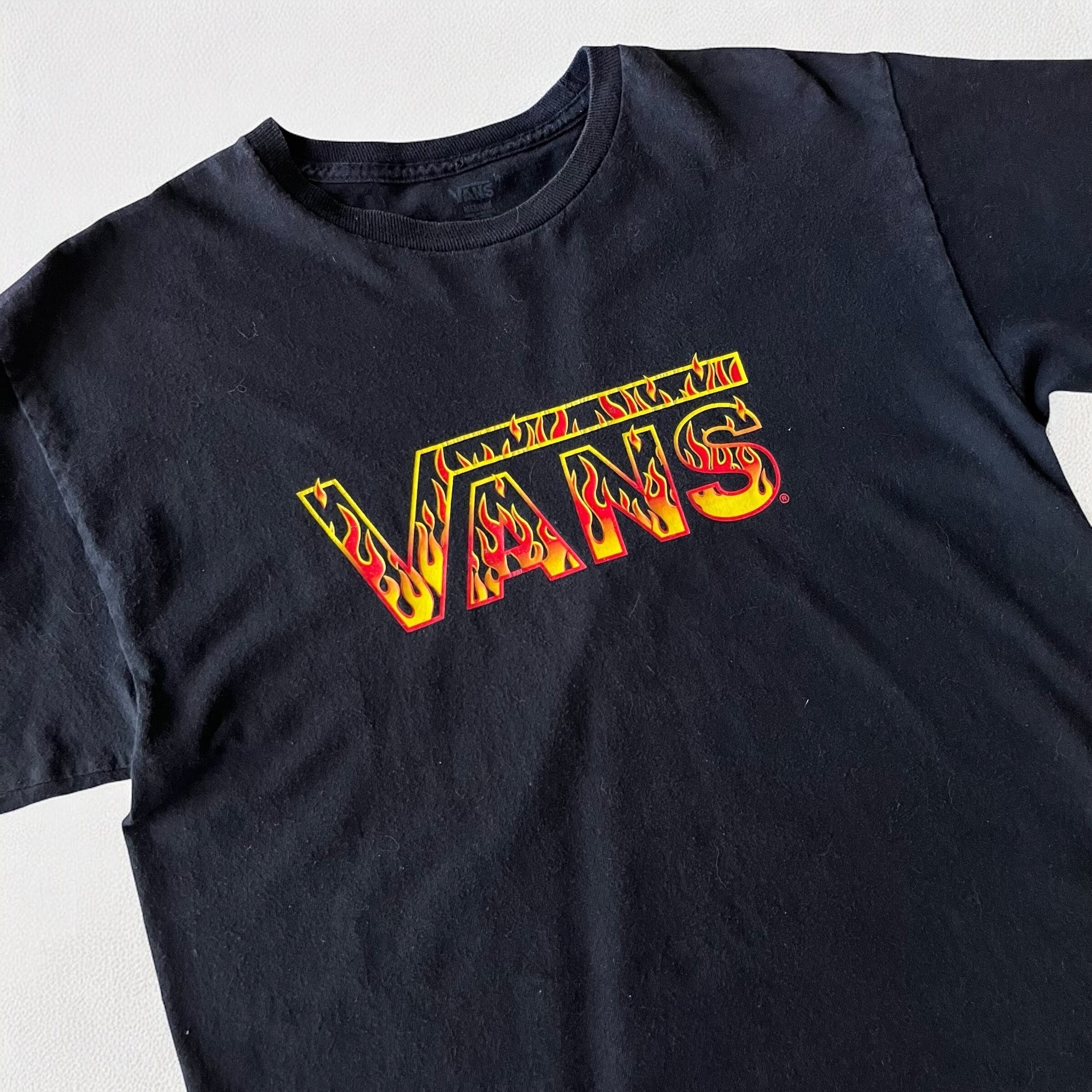 定番ロゴがファイヤーパターンにデザインされたtシャツ