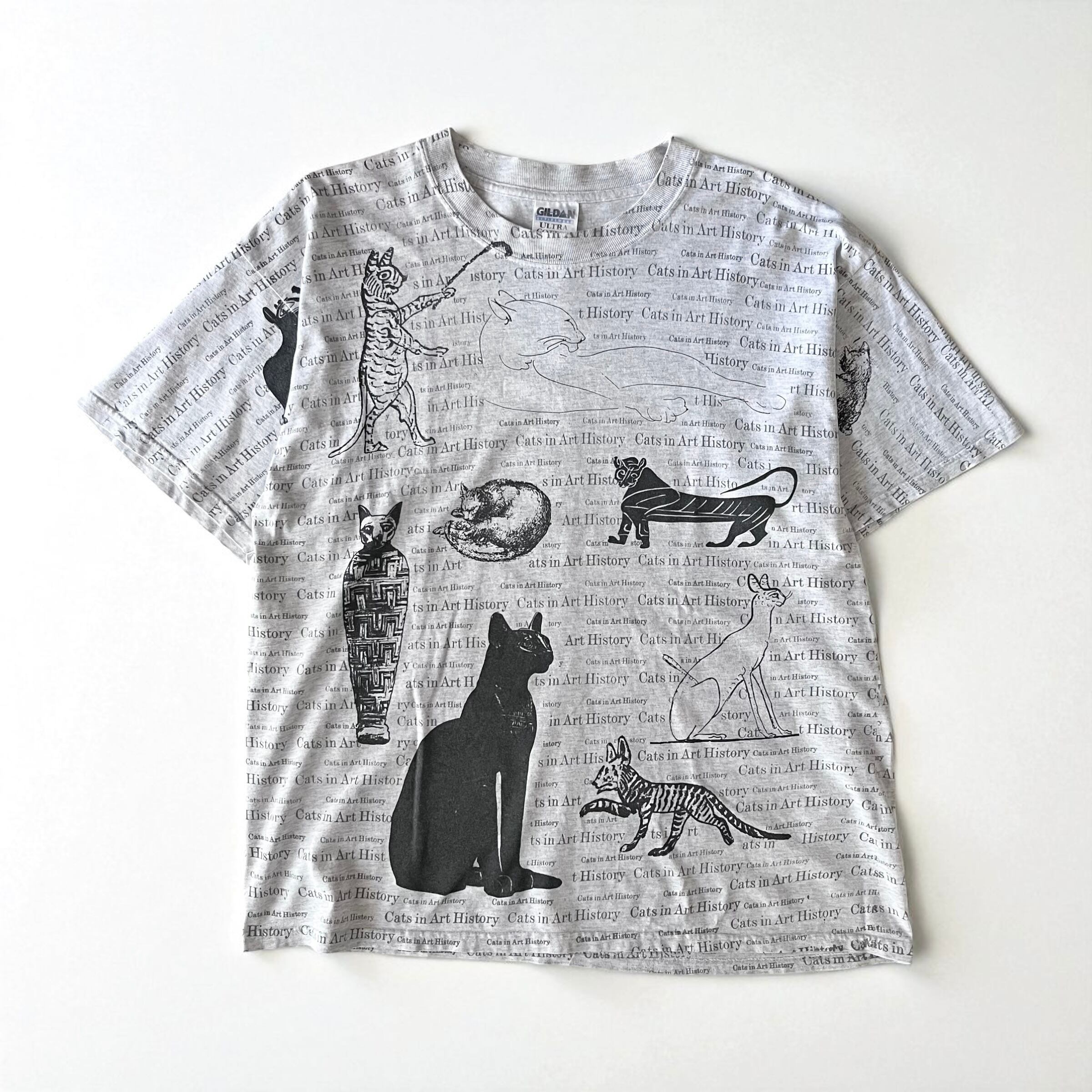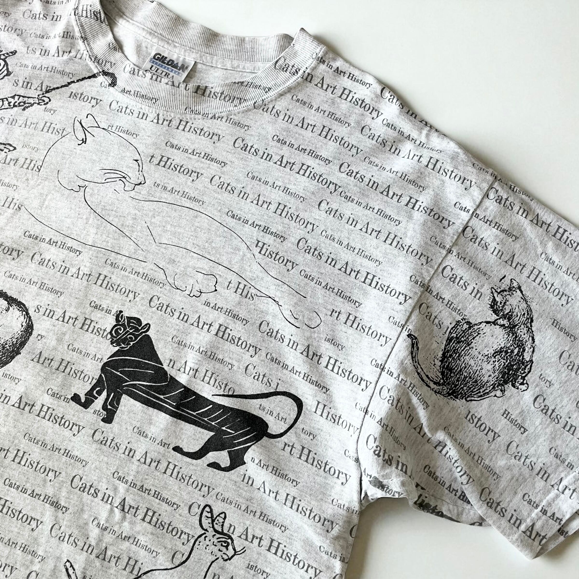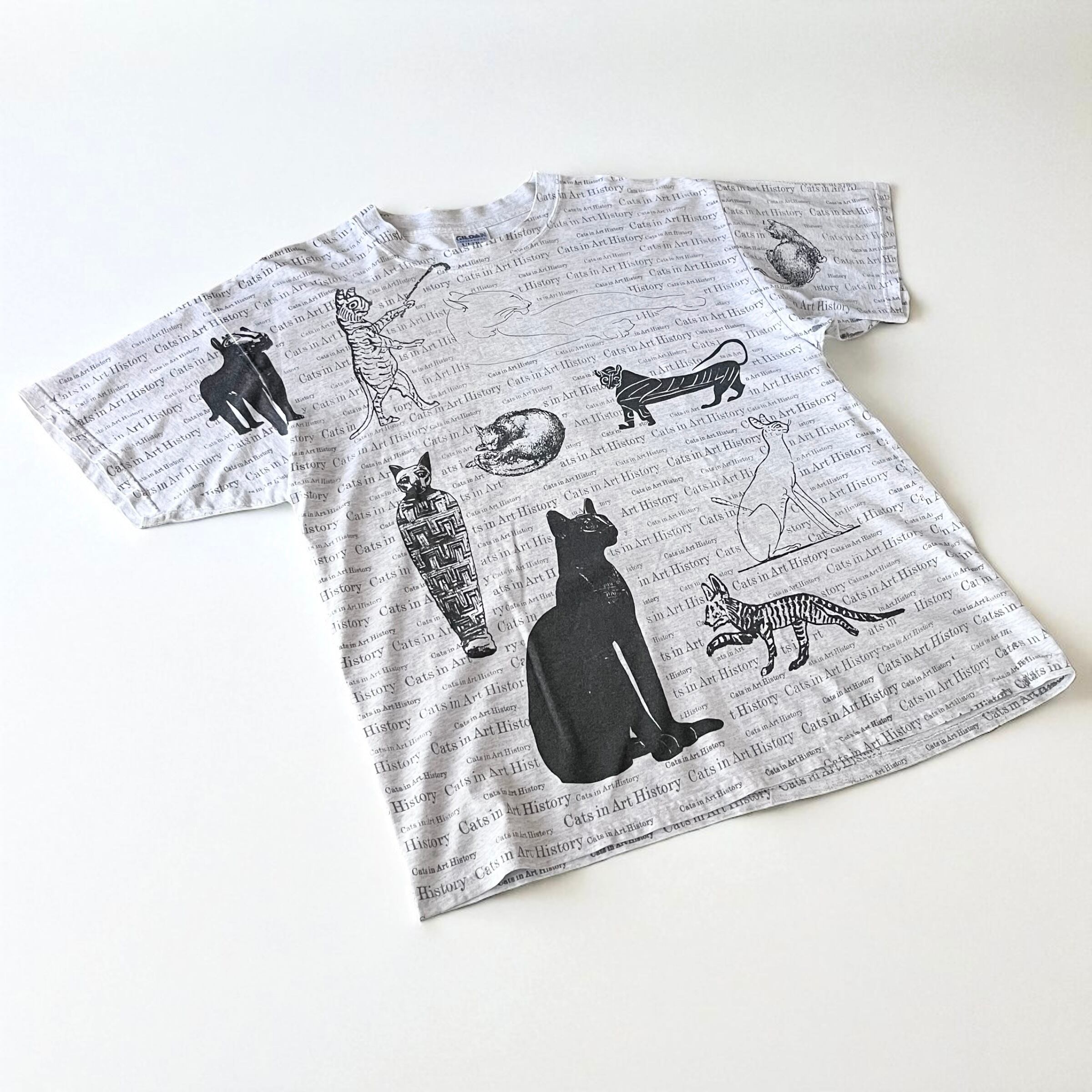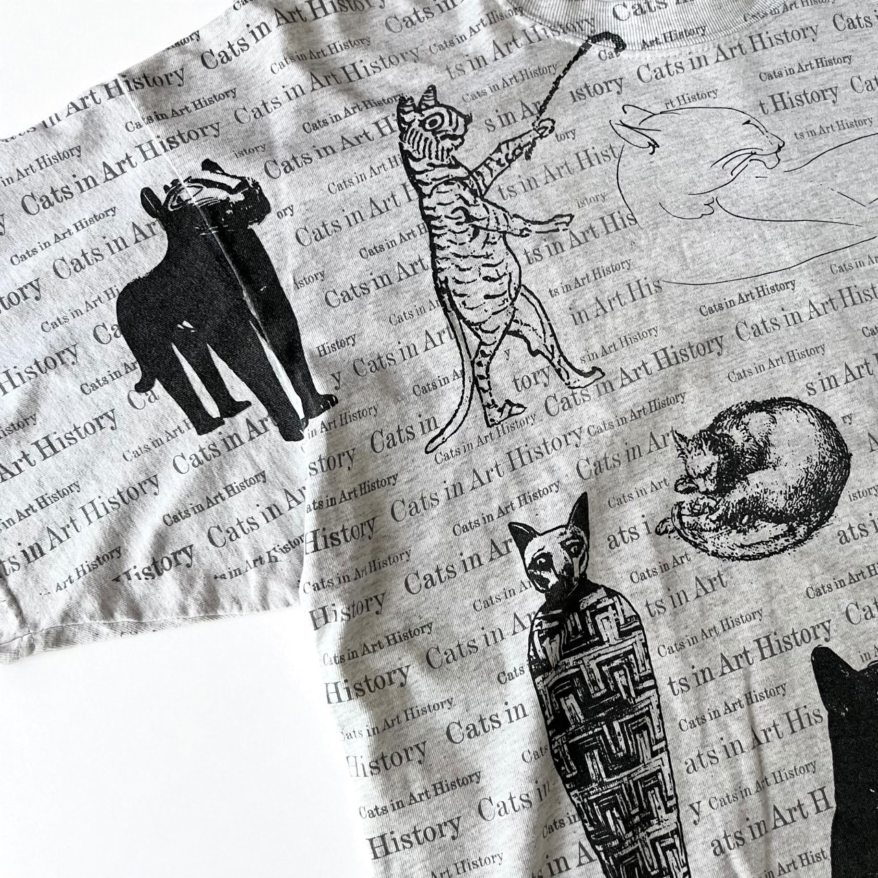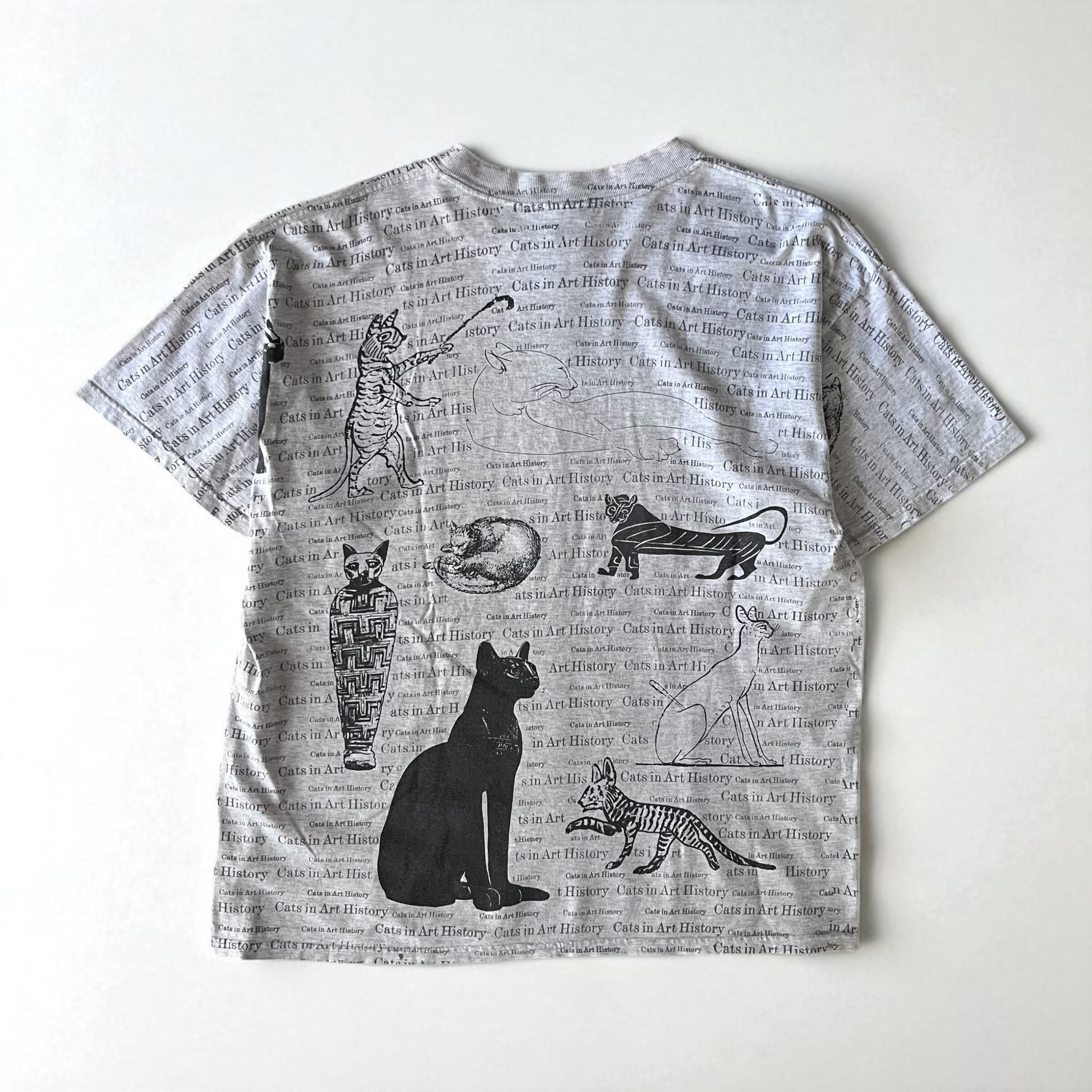 キャッツインアートヒストリーの総柄に美術史で見るネコたちがデザインされたtシャツ