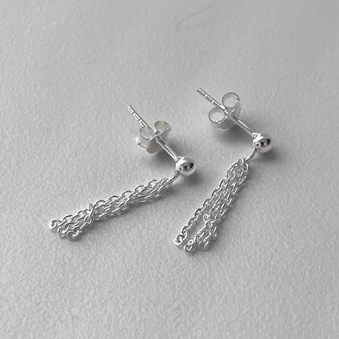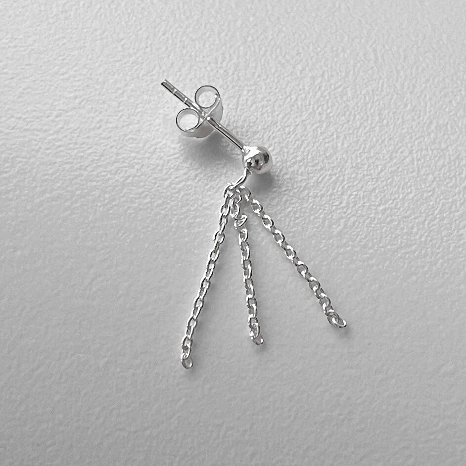 フロントパールから垂れ下がる三本のチェーンが個性的なシルバーピアス