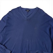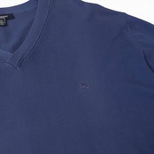 オーバーシルエットの落ち着いた色味のペールトーンブルーボディに浅めのVネック
