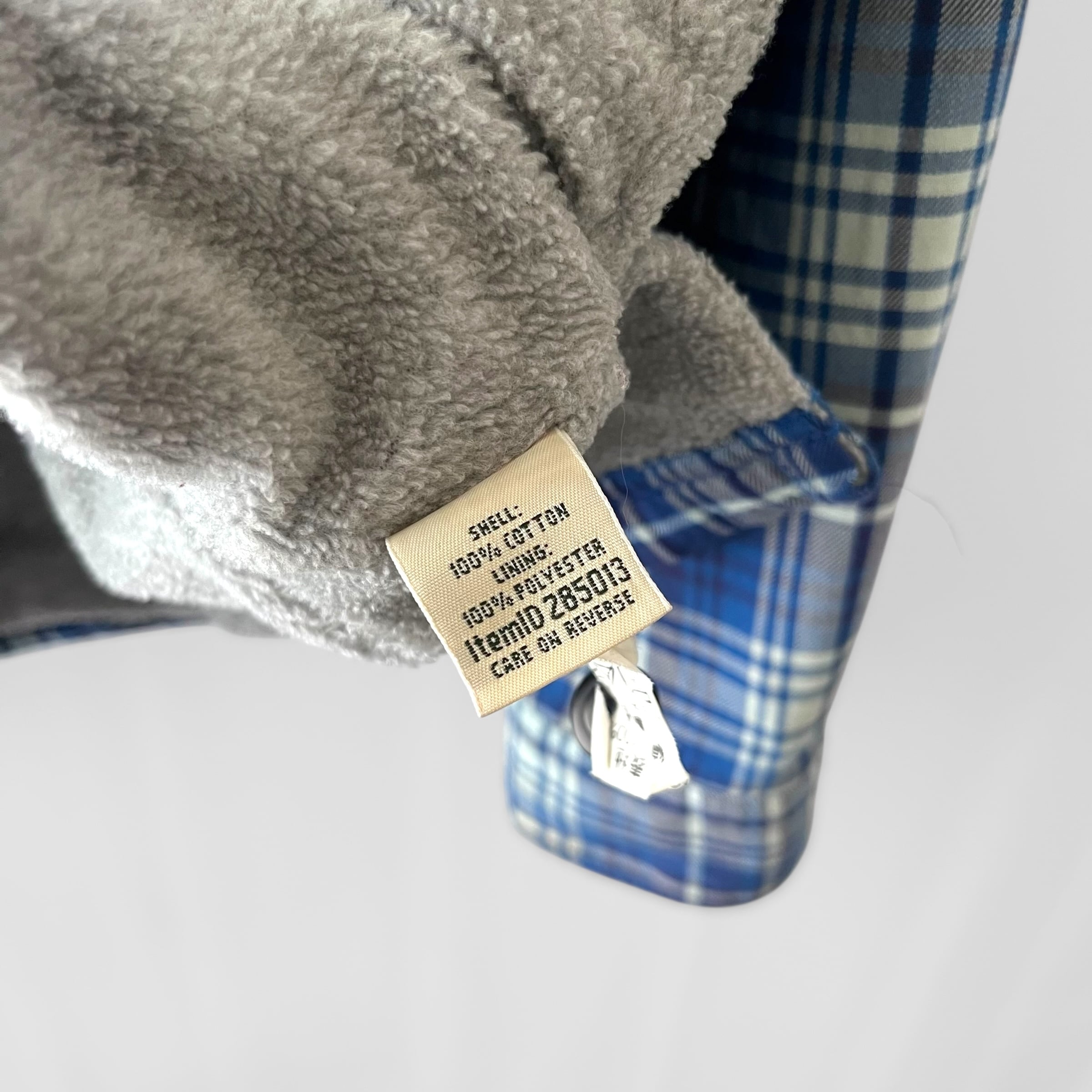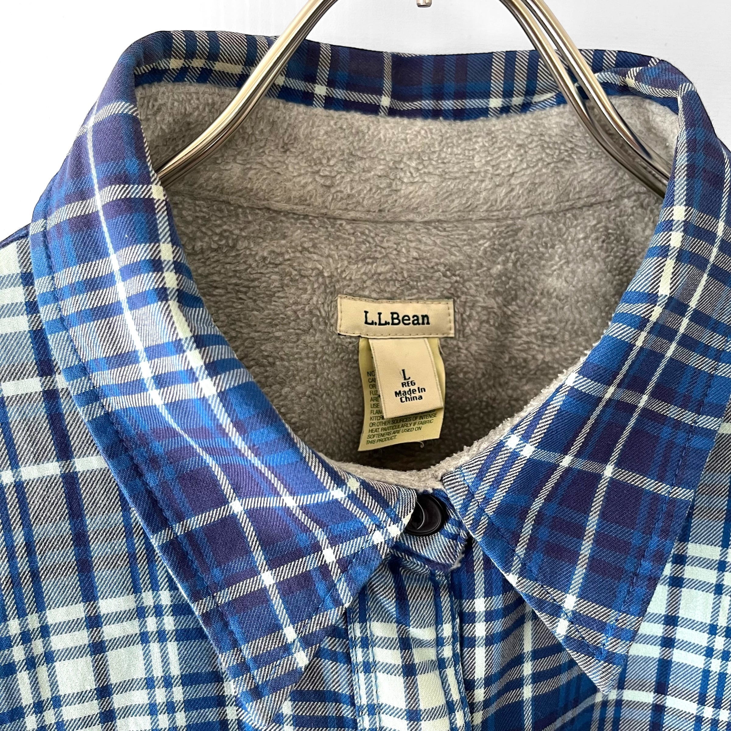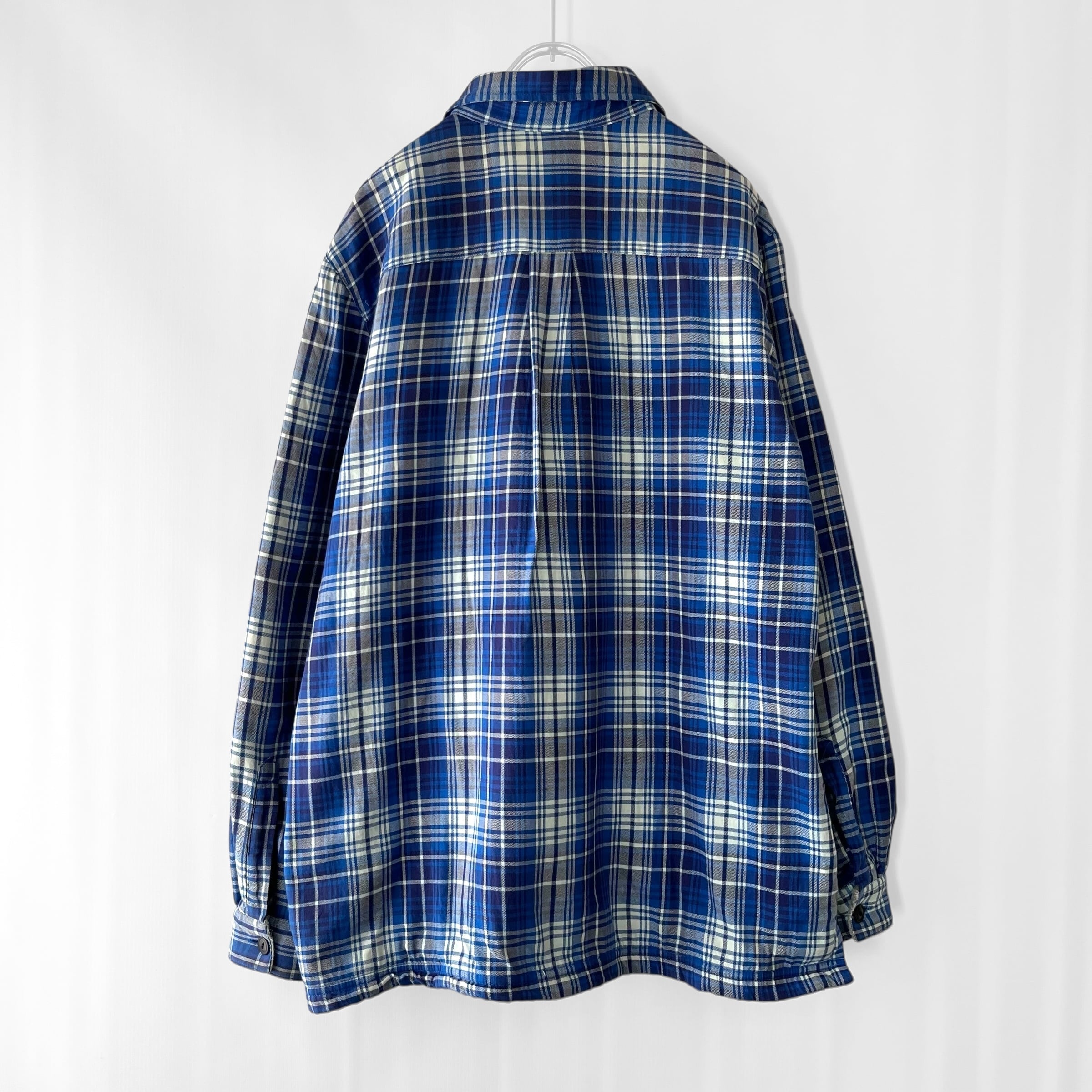 裏地にポリエステルボアが付く保温性高いシェルパライクなチェックシャツ
