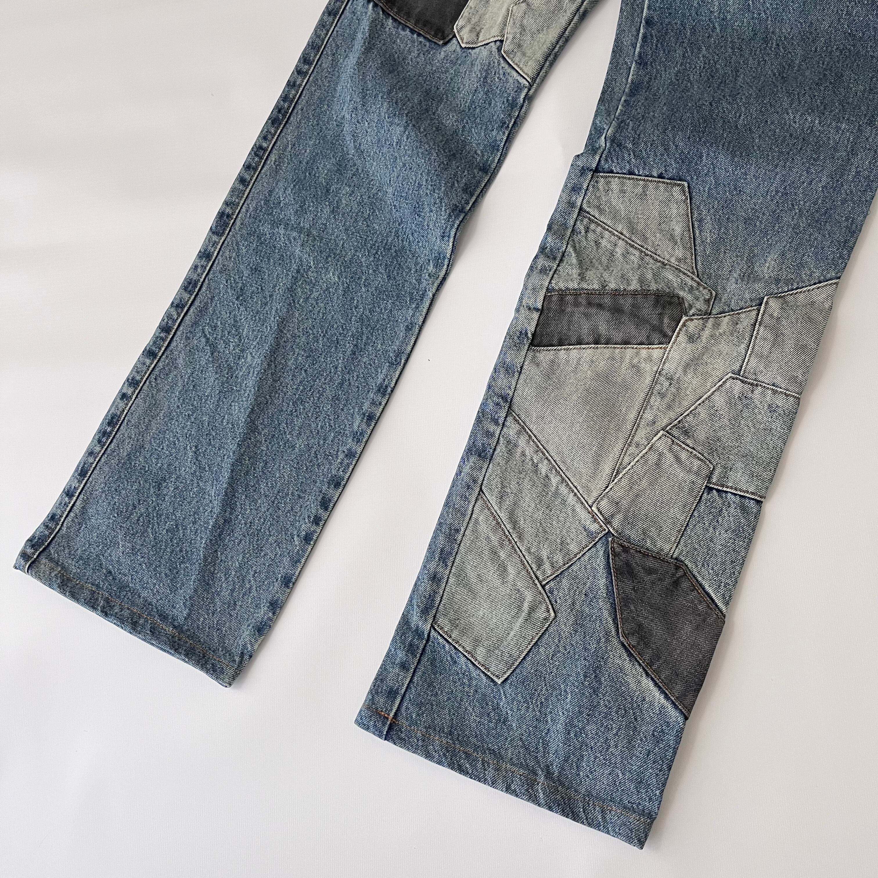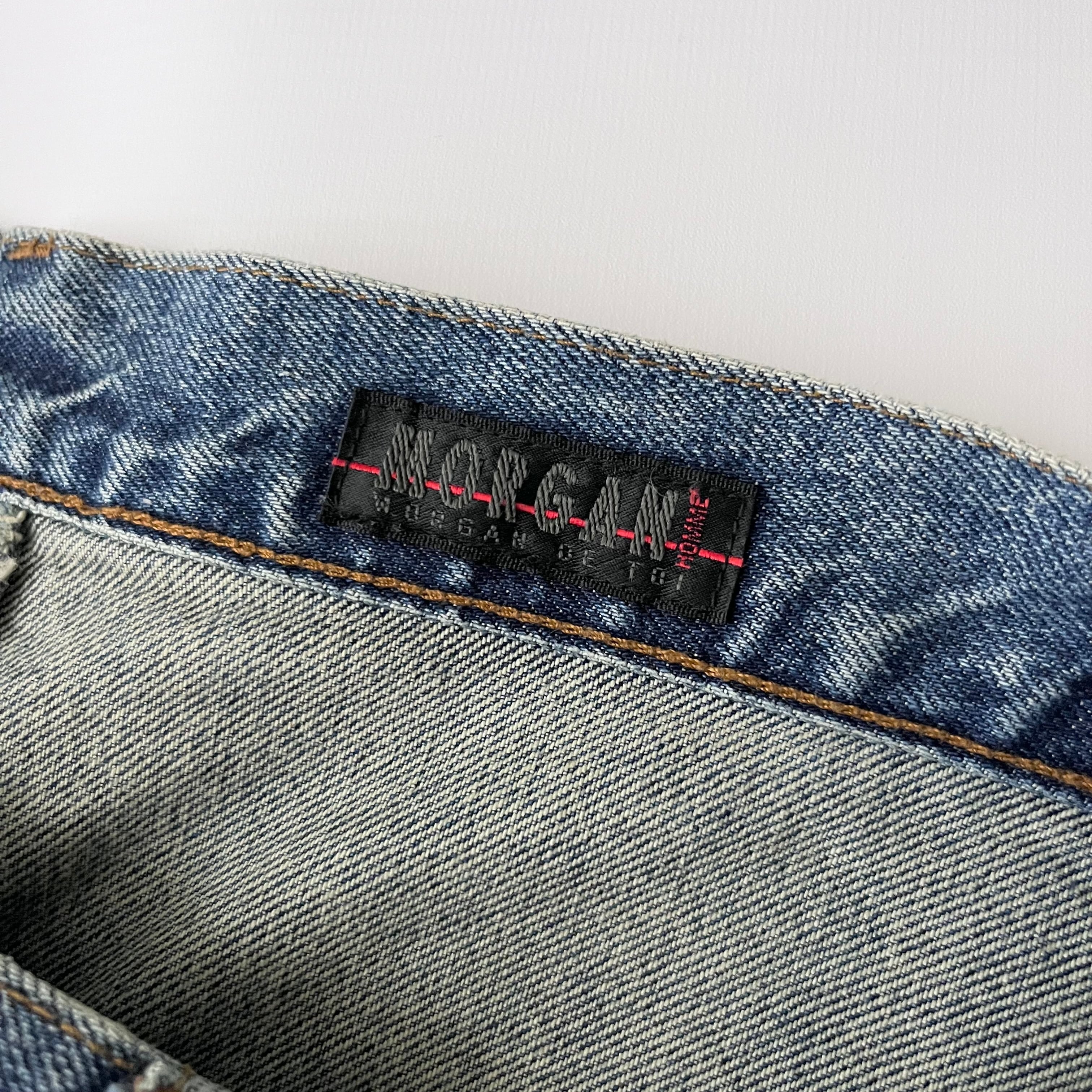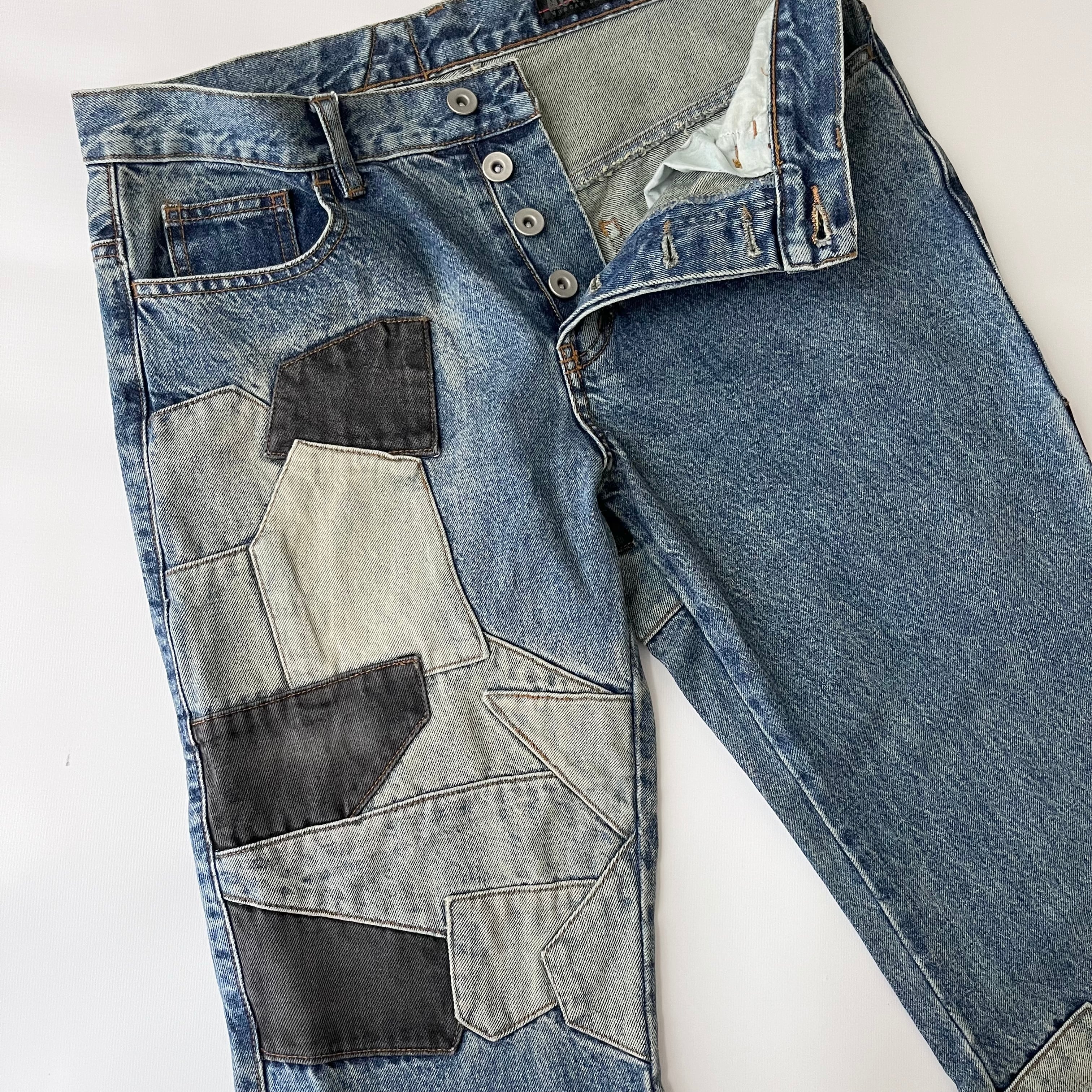 フランス発のブランド、モルガンオムのパッチワークデニムパンツ