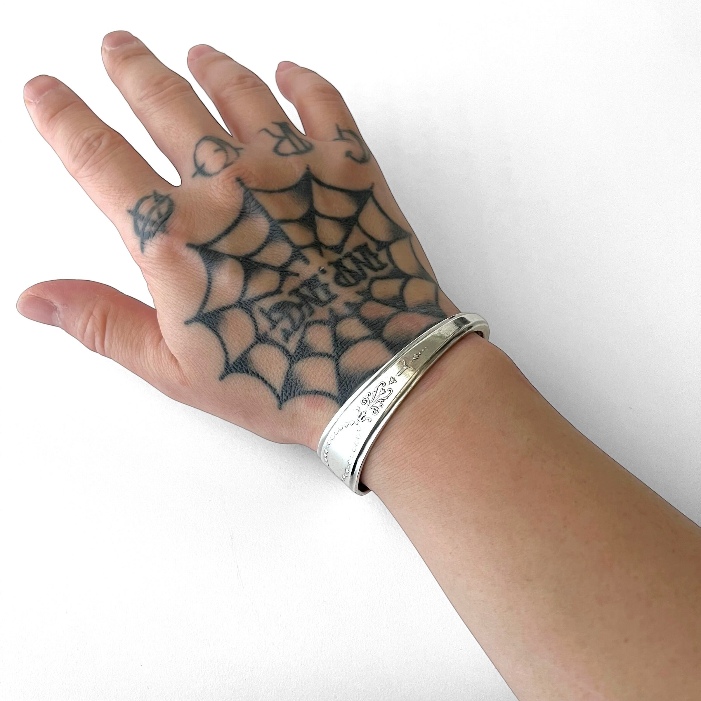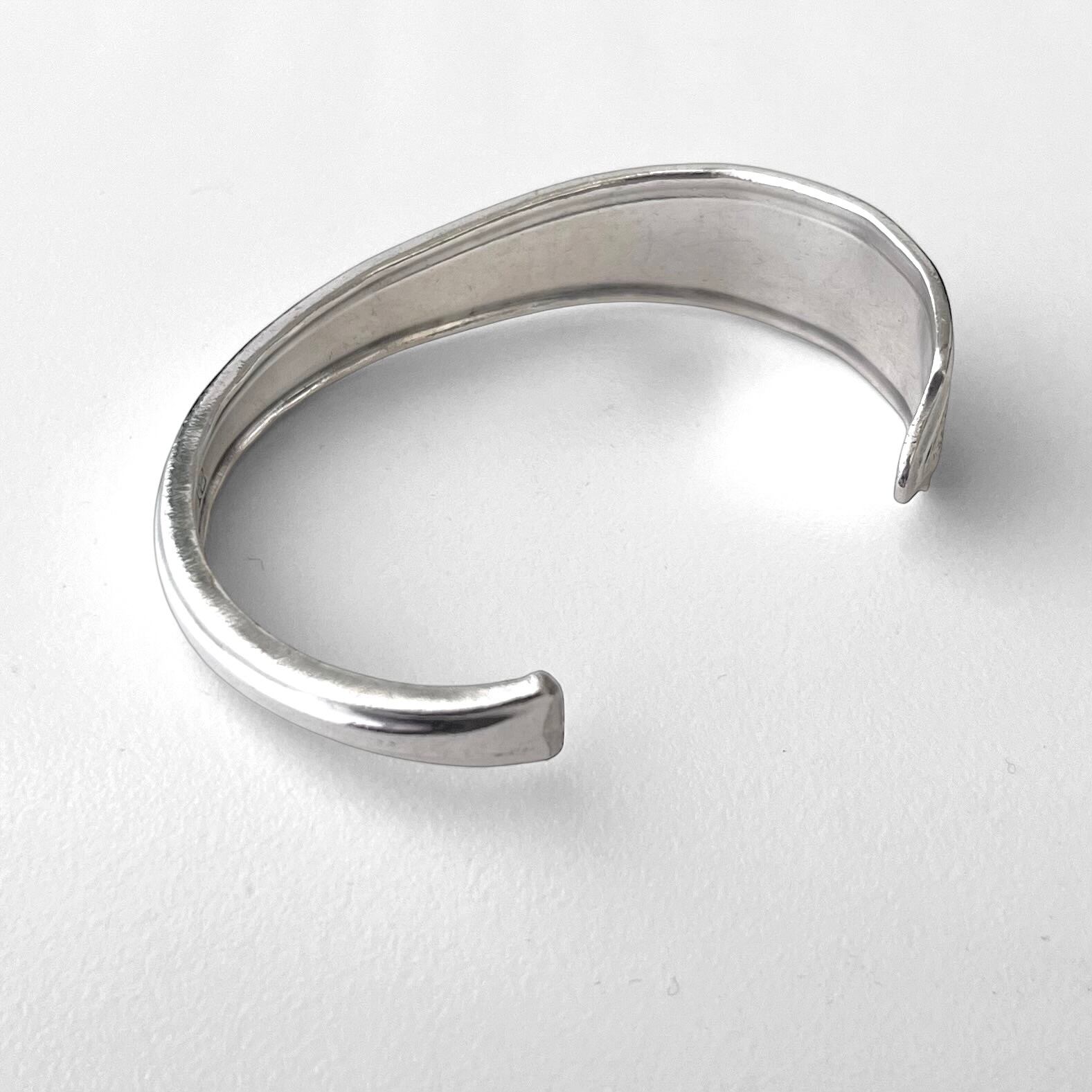 本来は食器としてデザインされたものを曲げてバングルに加工しているため、独特の曲線美とヴィンテージ感があるのが特徴です。。