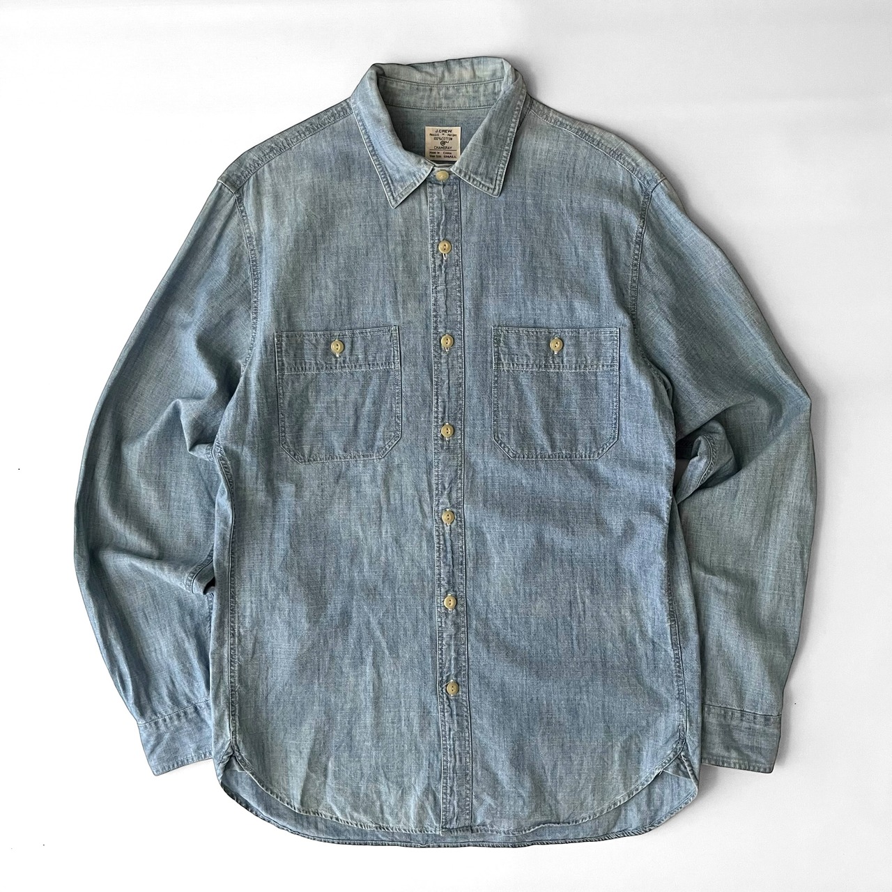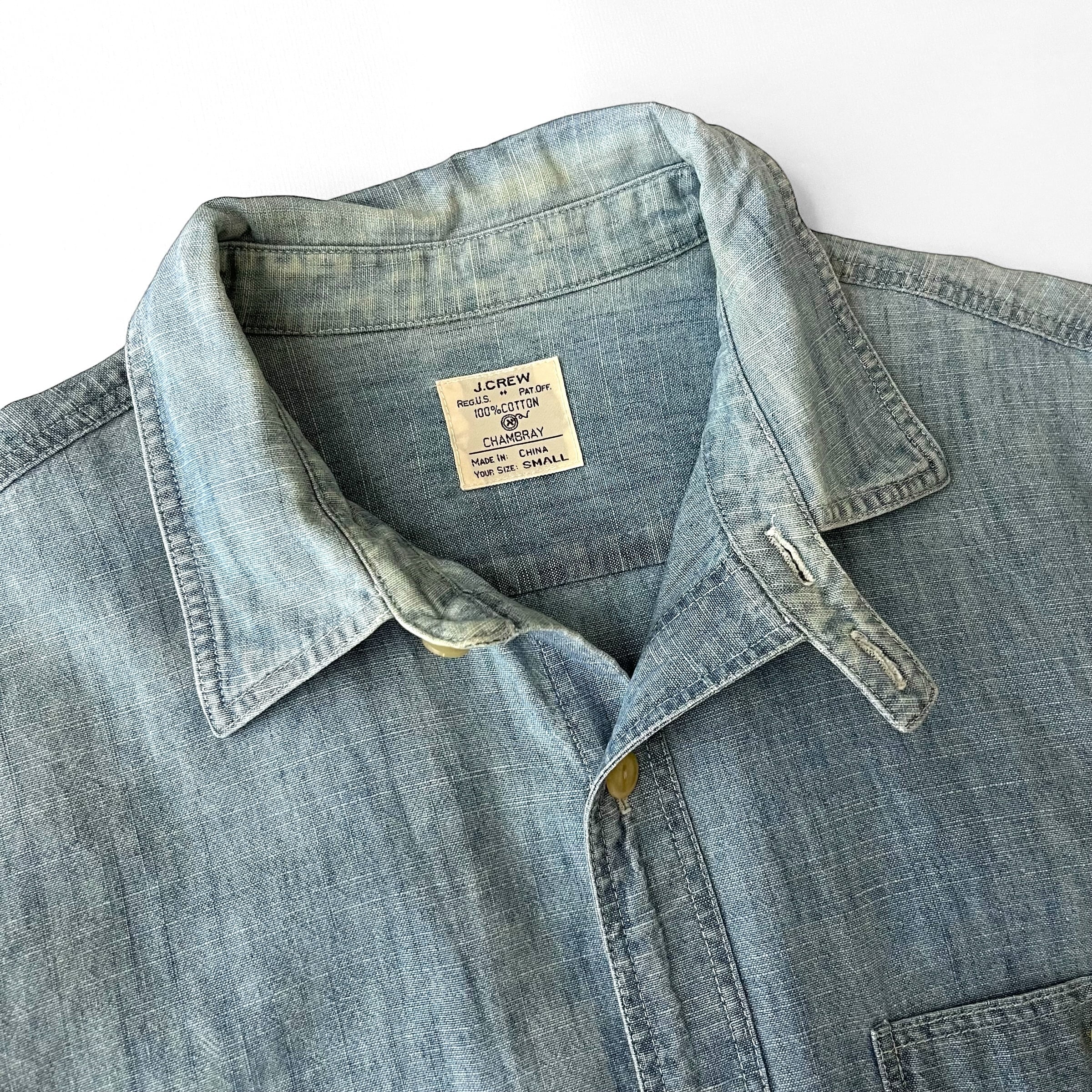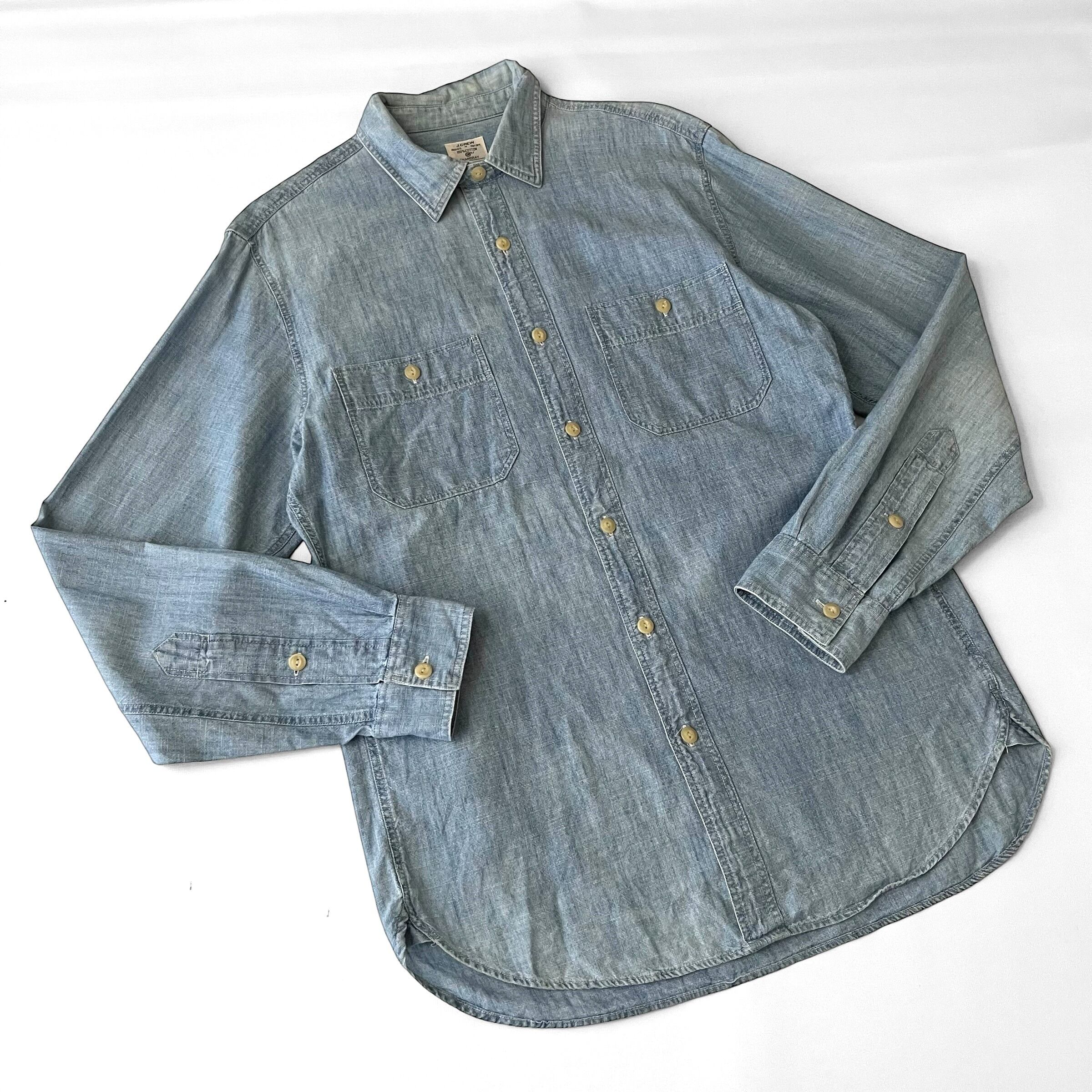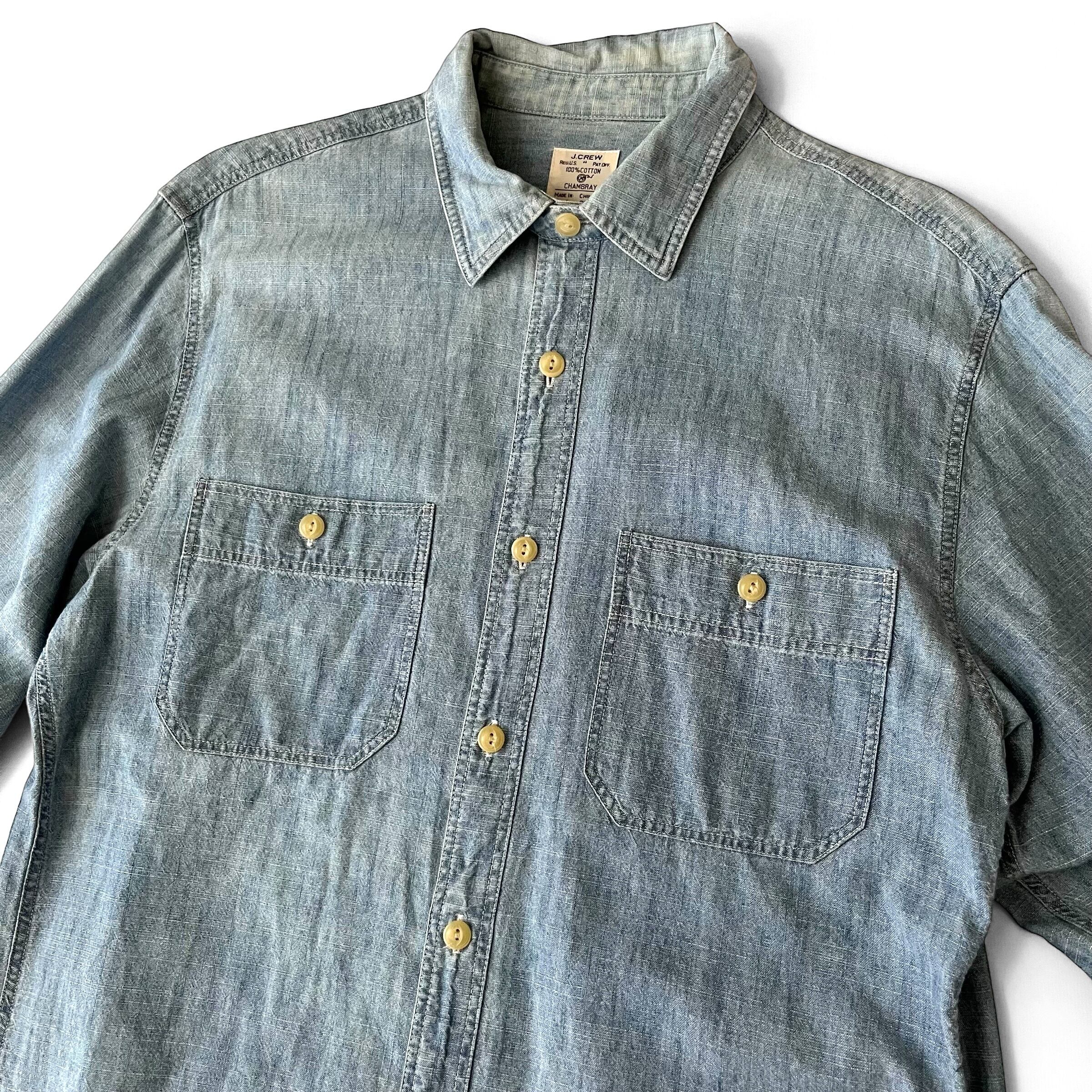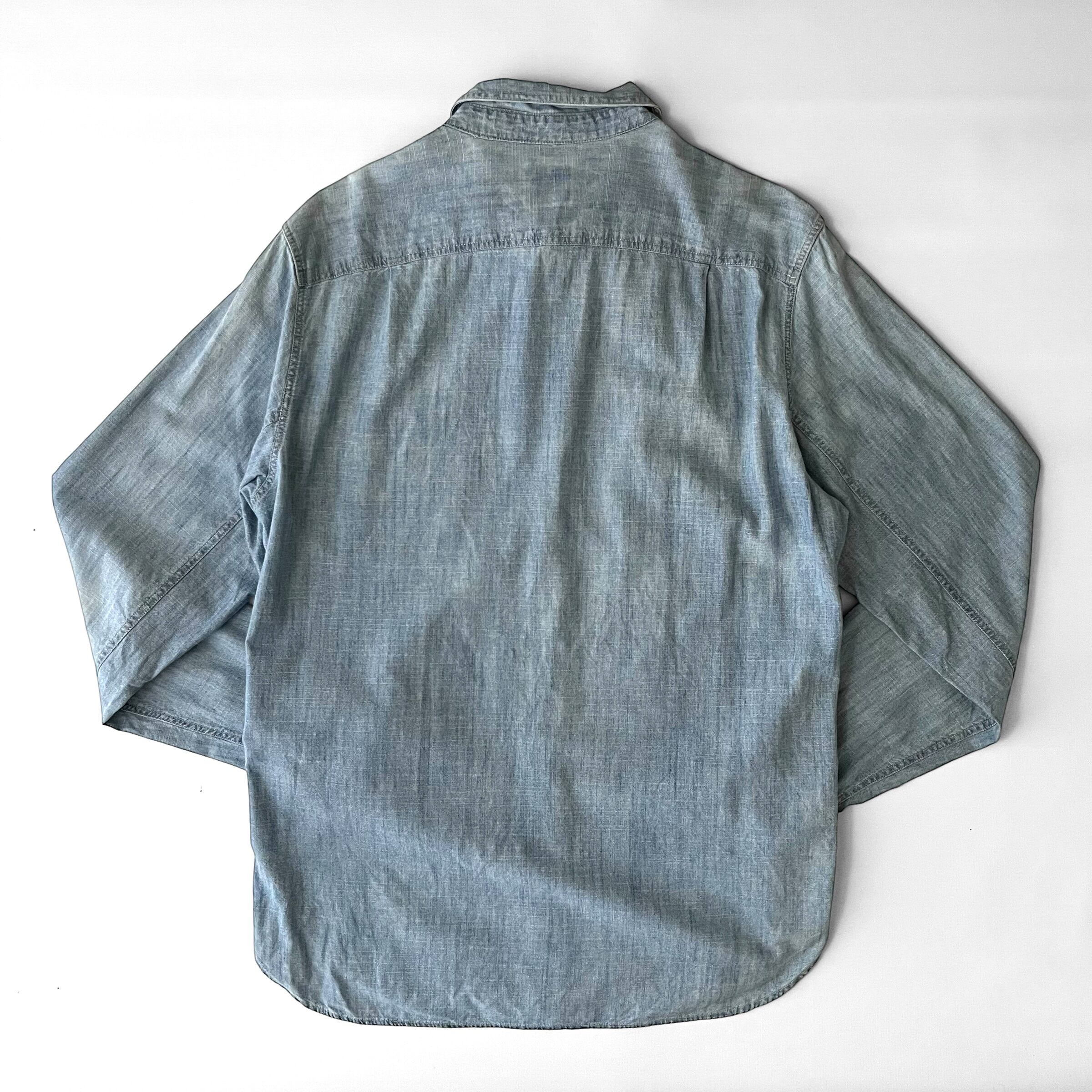 クラシックなチンストラップ付きのワークシャンブレーシャツ