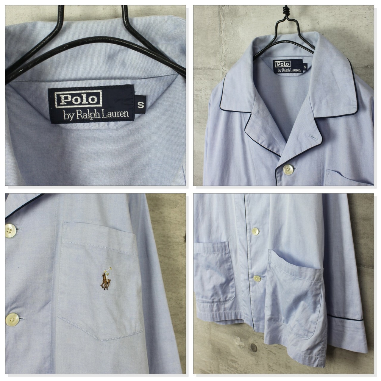 送料無料 【USED】 長袖シャツ メンズ 古着 POLO by Ralph Lauren ラルフローレン オープンカラー パジャマシャツ S サックスブルー