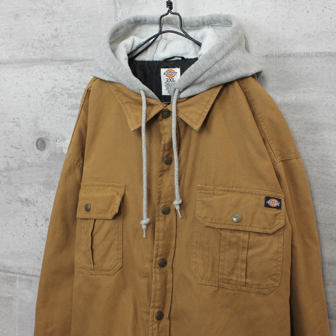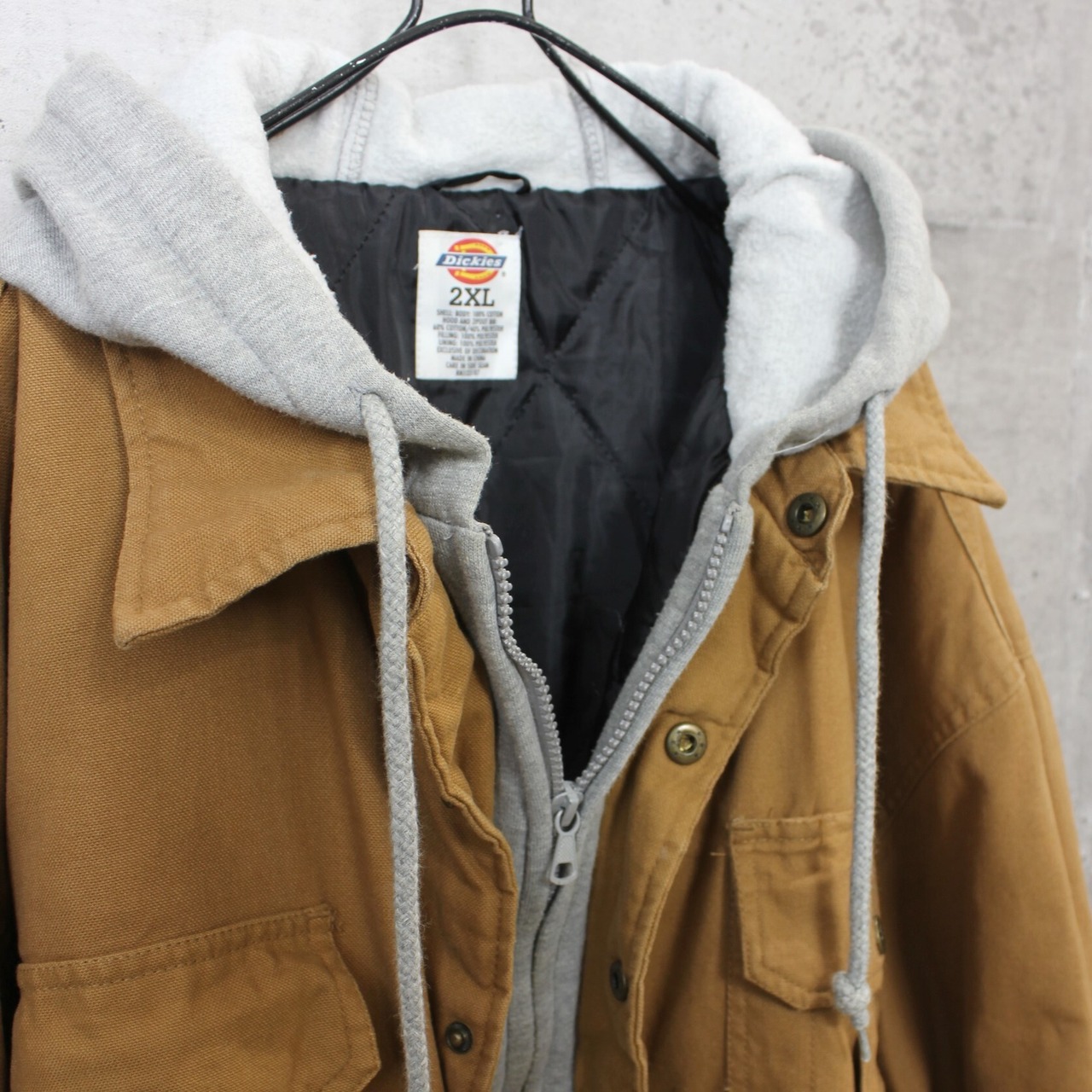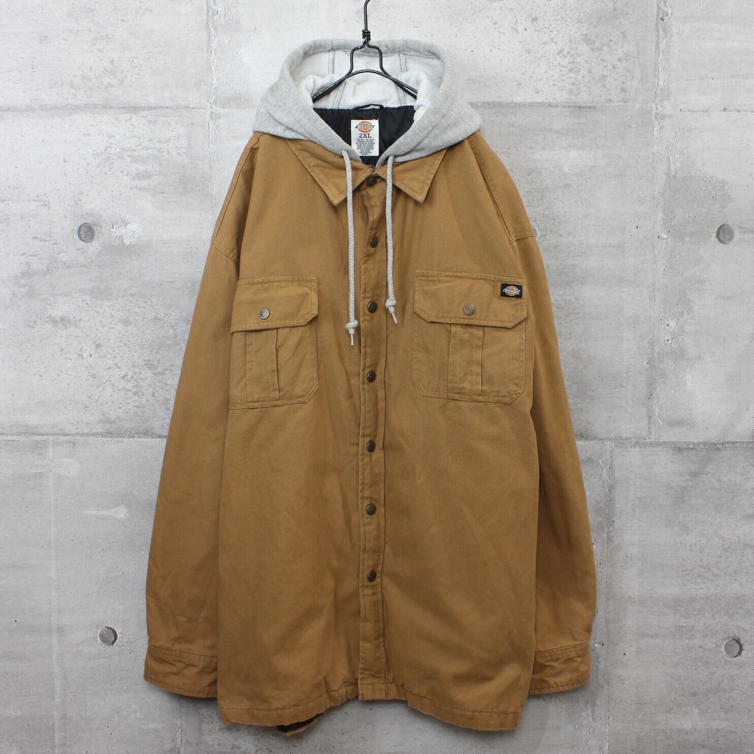 送料無料 USED ジャケット アウター メンズ USA 古着 Dickies ディッキーズ フェイクレイヤード ダック ワークジャケット 2XL ダックブラウン