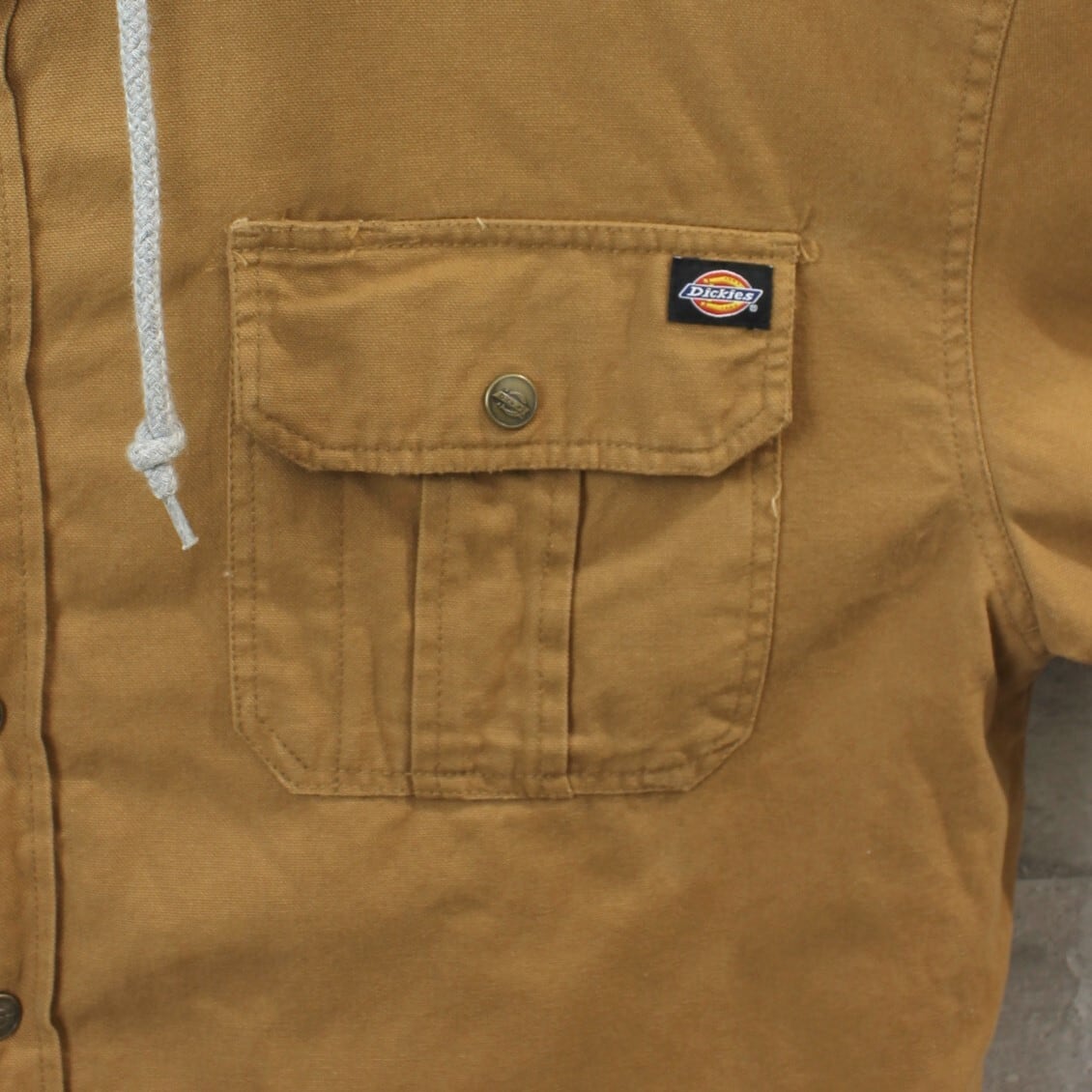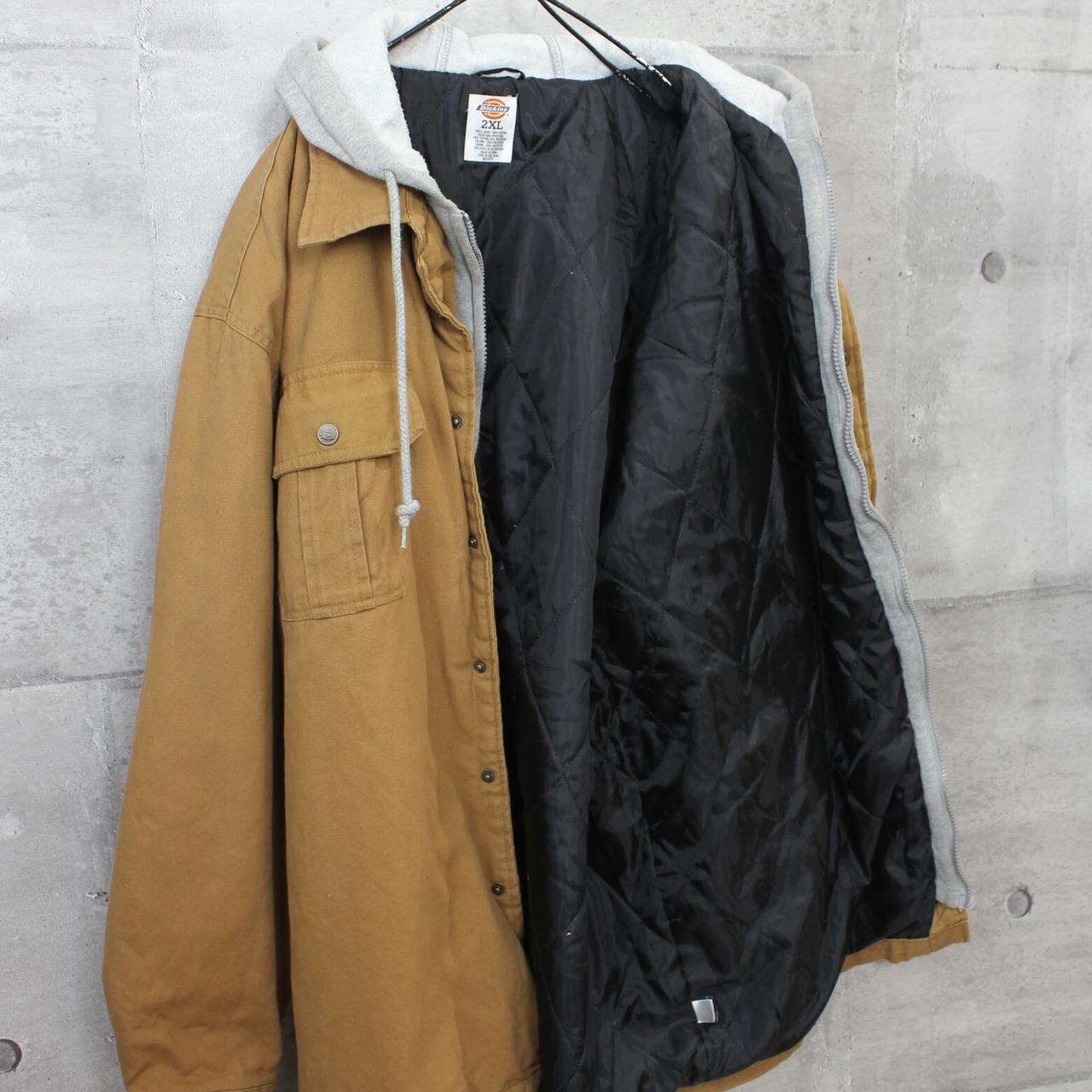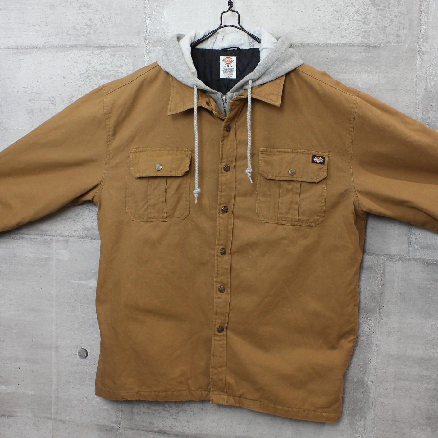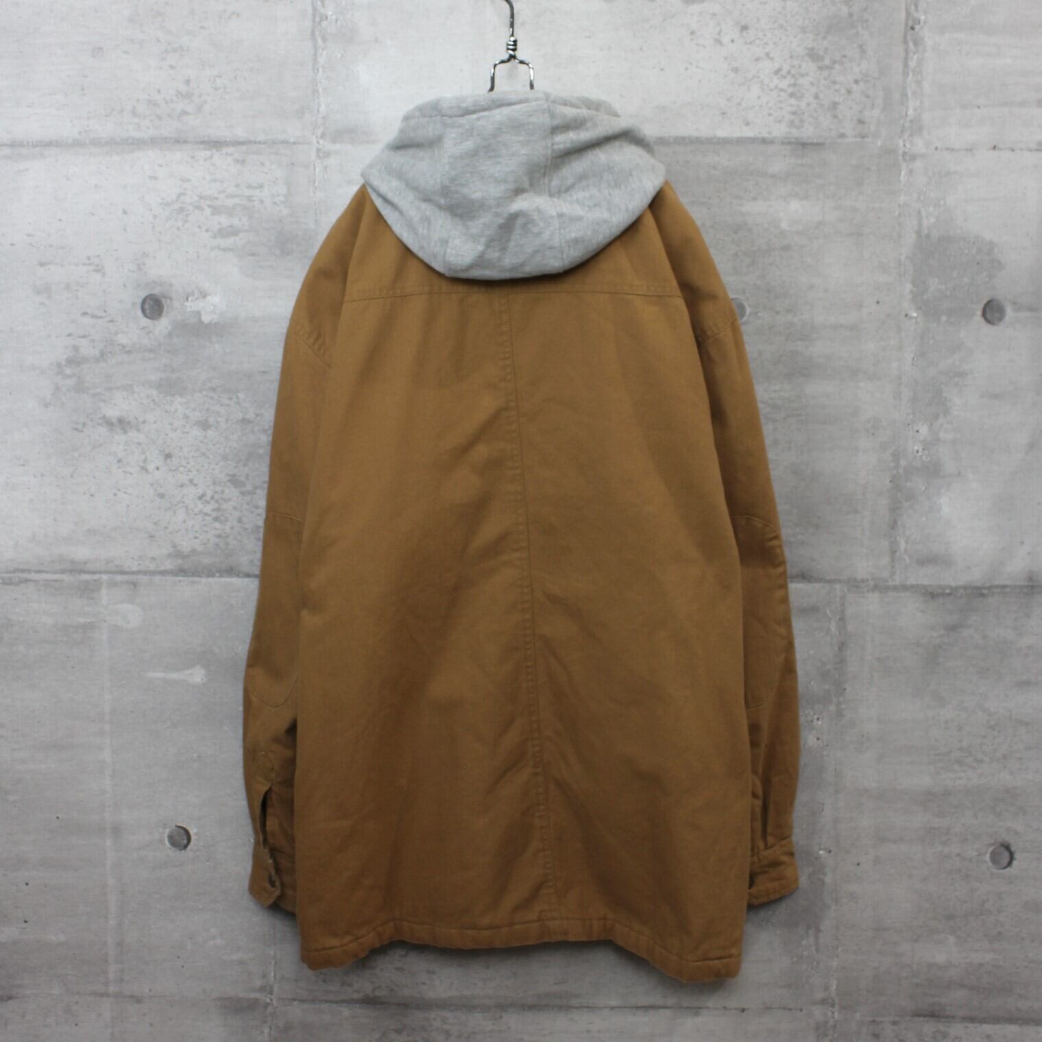 送料無料 USED ジャケット アウター メンズ USA 古着 Dickies ディッキーズ フェイクレイヤード ダック ワークジャケット 2XL ダックブラウン