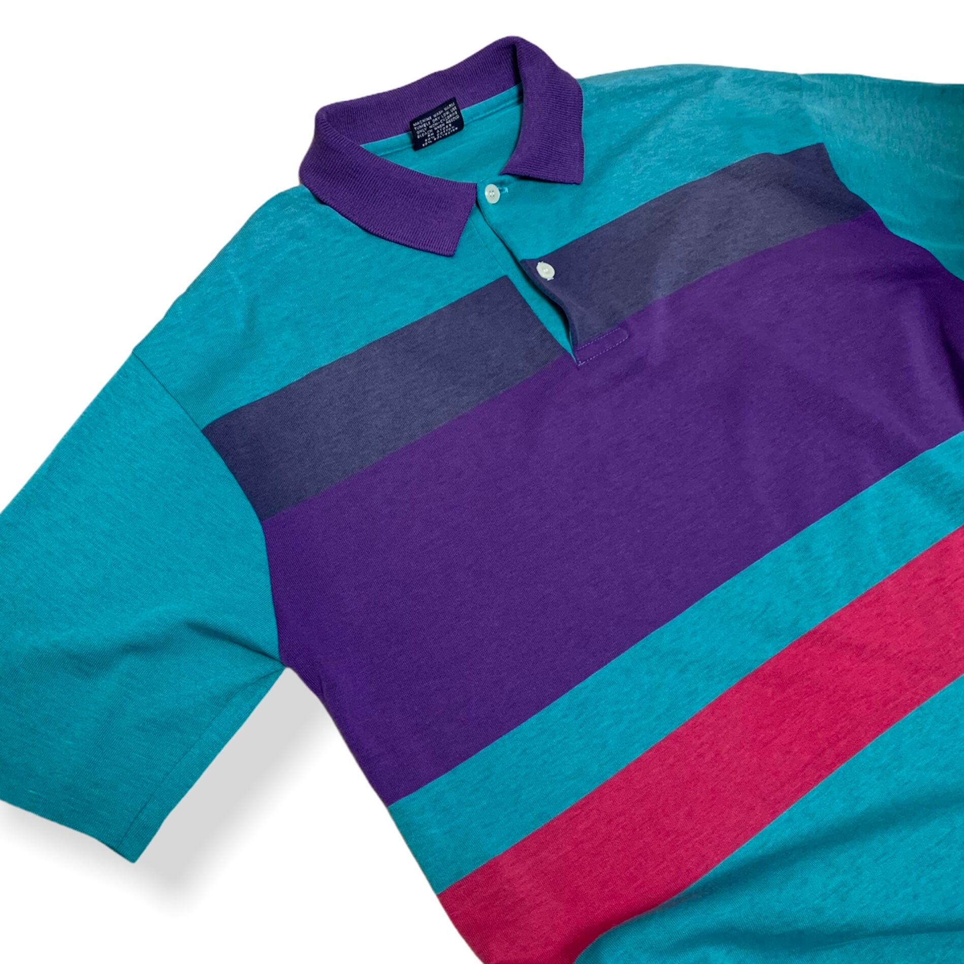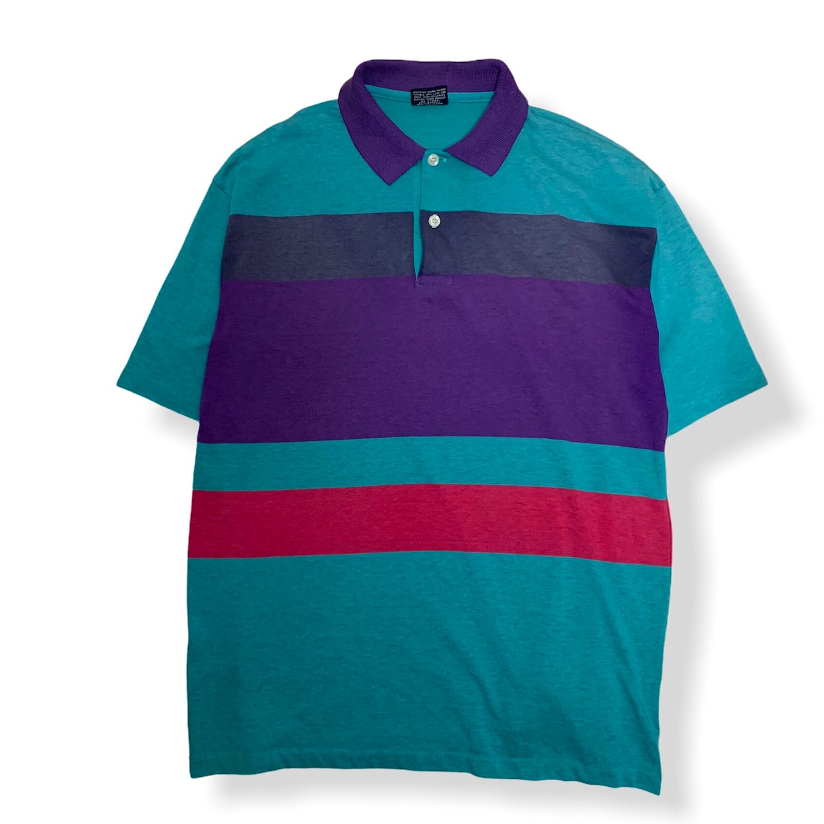 アメリカの定番ブランド、チェスターフィールドのUSA製ポロシャツになります。やや薄手のコットン生地で明るいグリーンとパープルがトレンド感のある配色です。