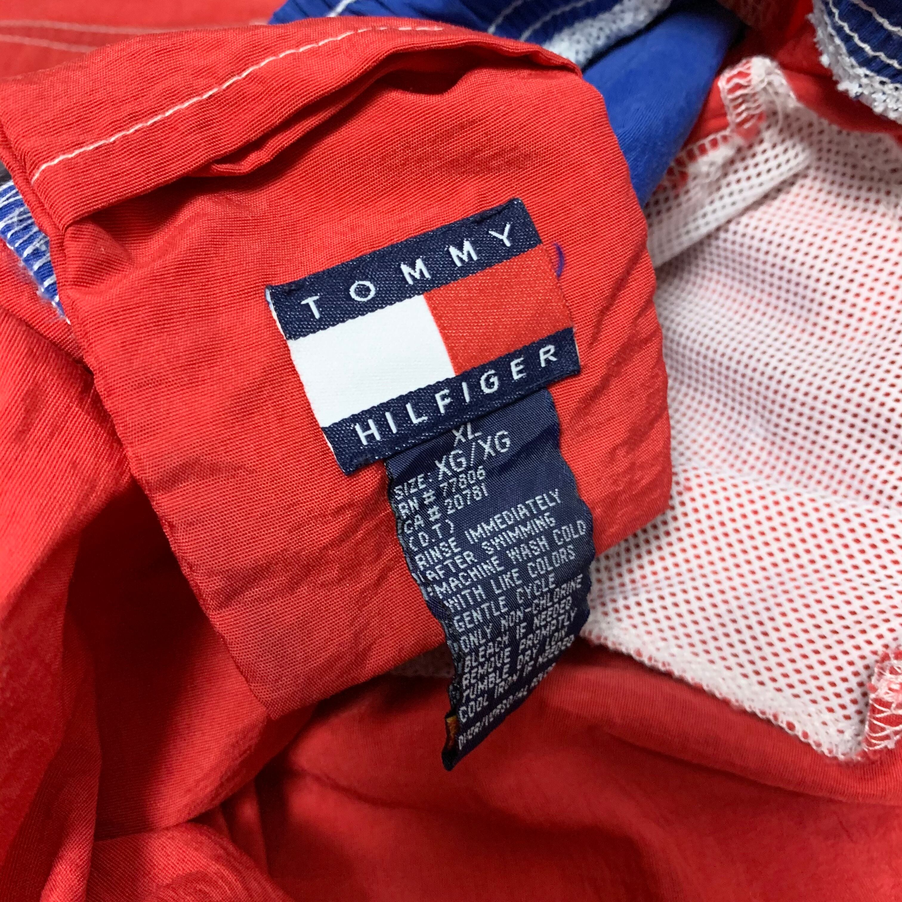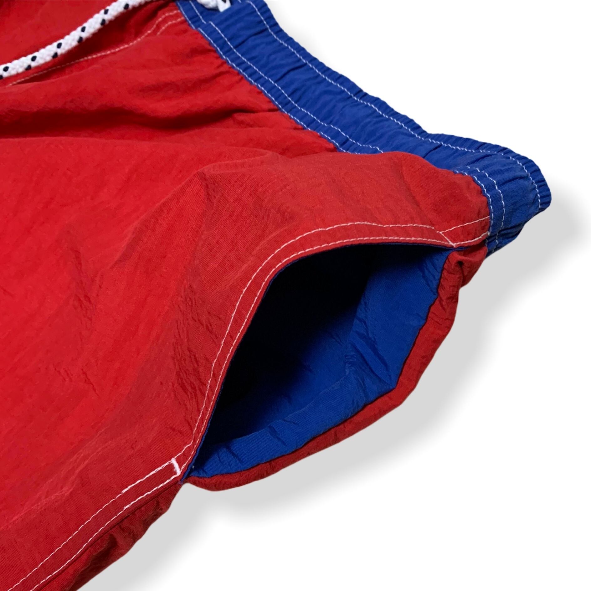 90's トミーヒルフィガーのスイムショーツになります。見た目のスポーティーな感じと、軽くて履き心地の良い素材感が人気の商品です。この手のパンツには意外とないサイドポケットやバックポケットもあるので、タウンとしても十分使えます。