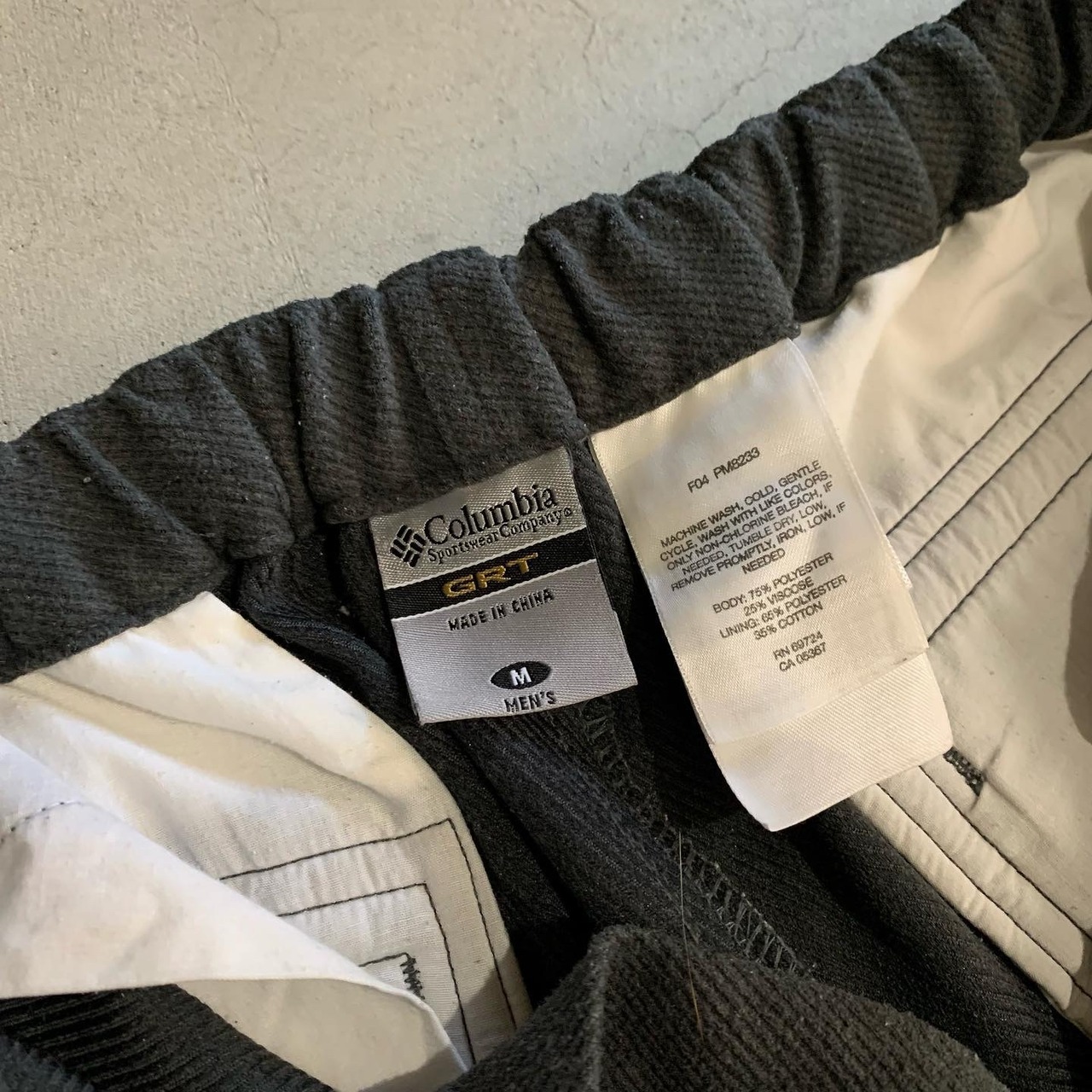 ウール生地のような生地感のポリエステルアウトドアパンツ