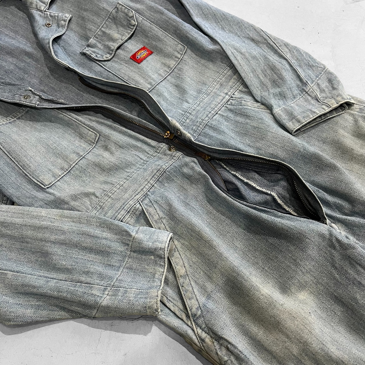 アメリカのワークブランド、ディッキーズのヘリンボーンオールインワン=ツナギ