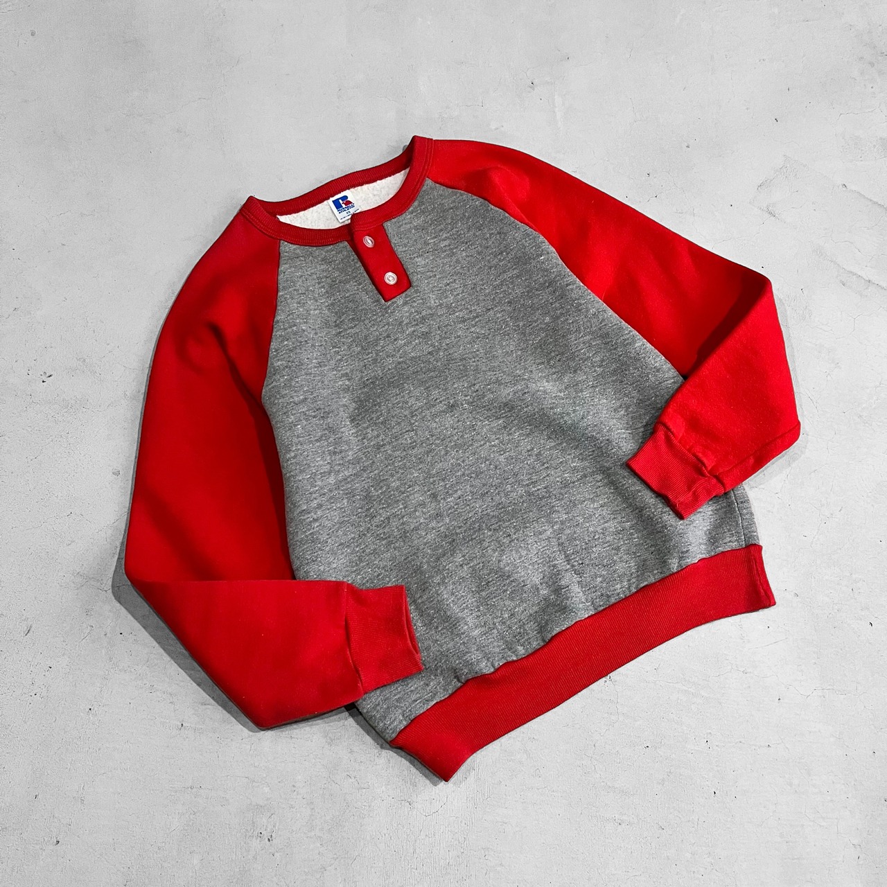 ラッセルアスレチックスのヘンリーネックラグランスウェットトレーナー