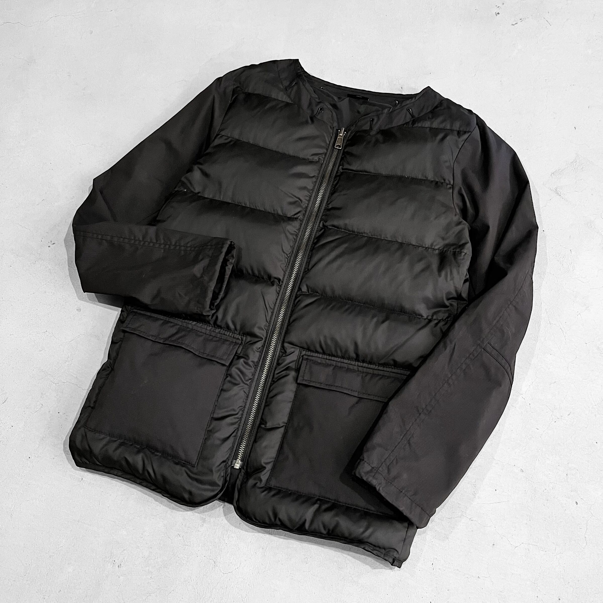 ライナーフロント部分にはダウンが入り、よく見ると袖のみリップストップ生地で切り替えてある