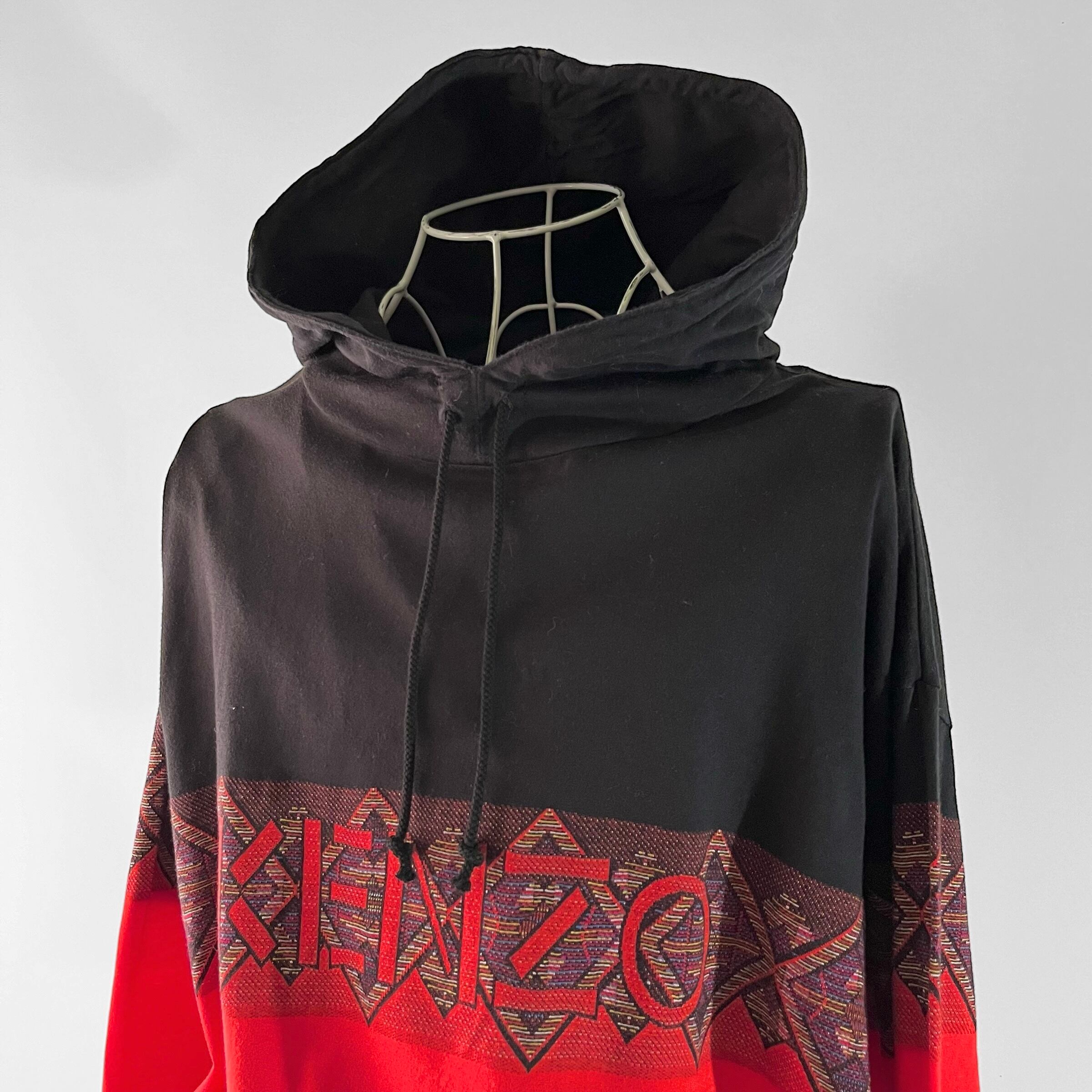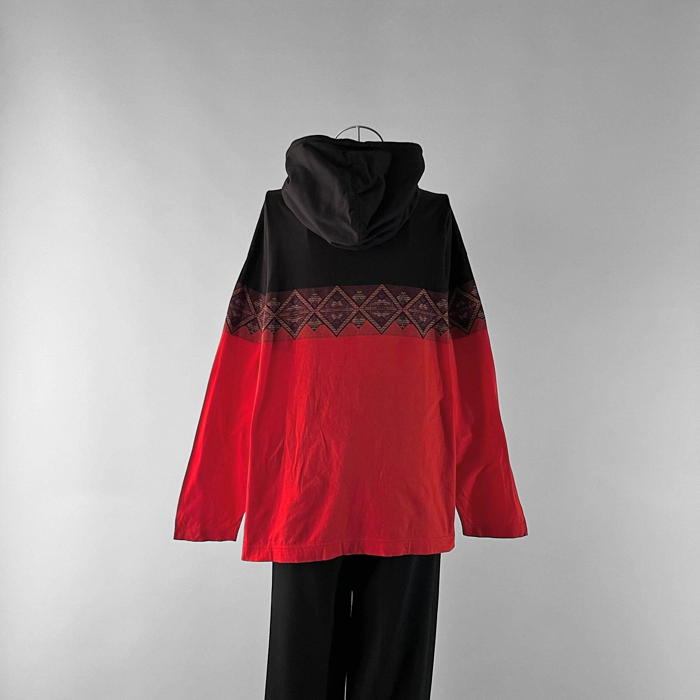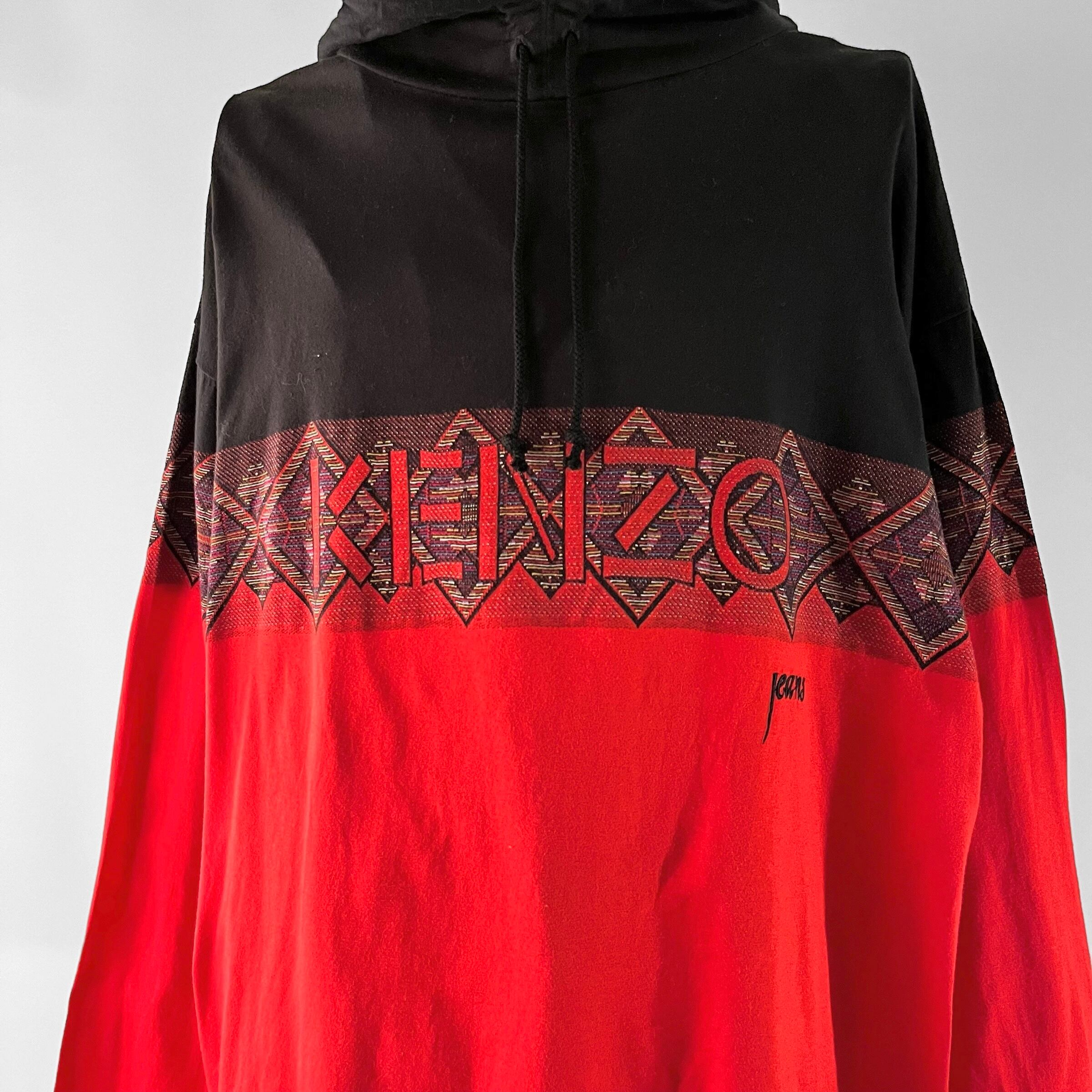 ブラックとレッドのツートンカラーの中央にはエスニックなデザインとケンゾーロゴ