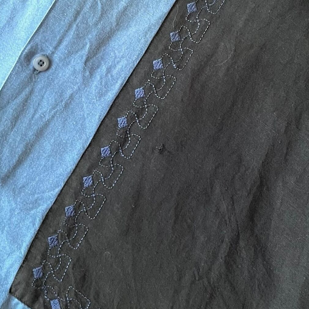 フロントの切り替えと縦に入る飾り刺繍がポイント