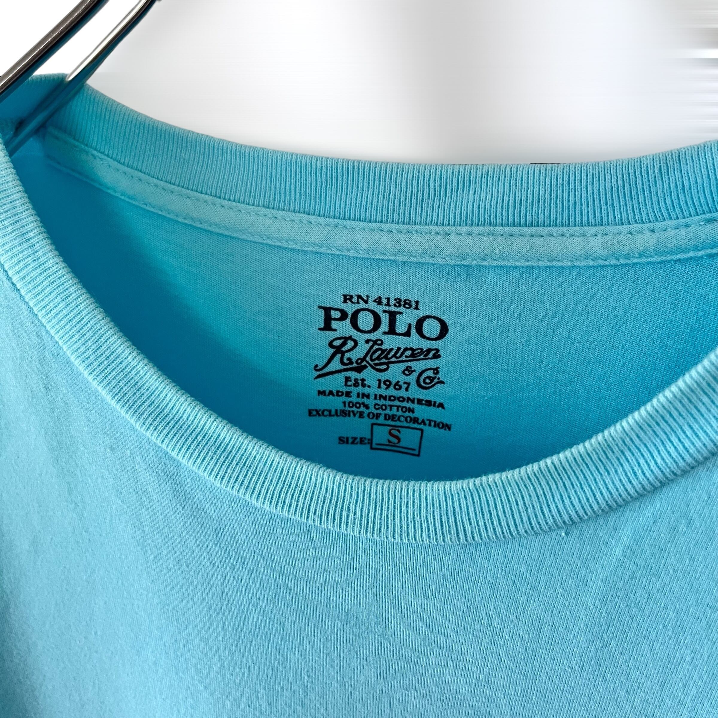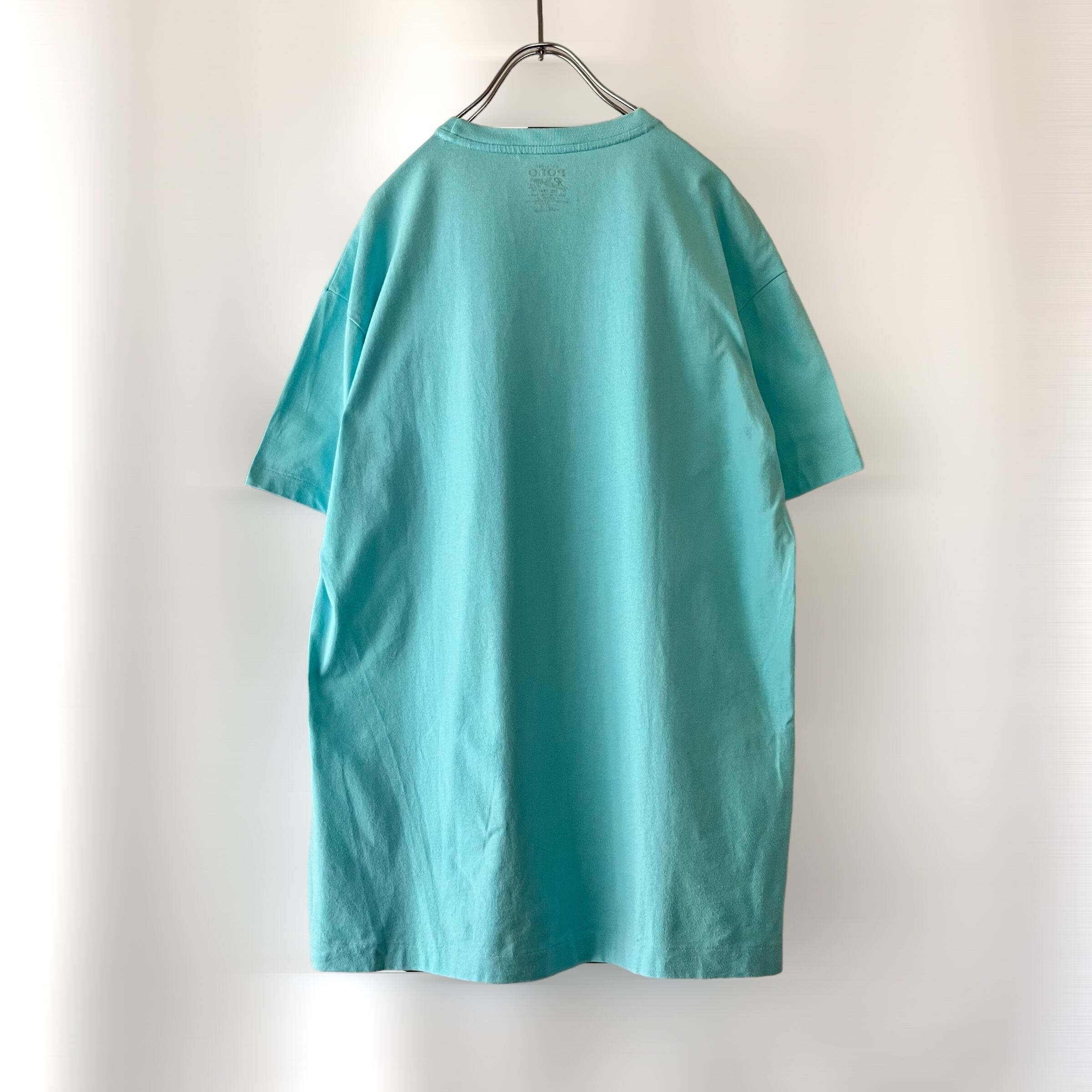 明るいブルーカラーのポケ上に配色良いイエローのワンポイントポニー刺繍入り